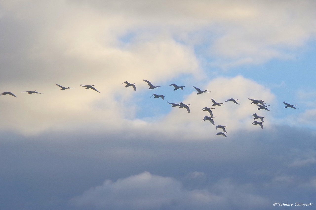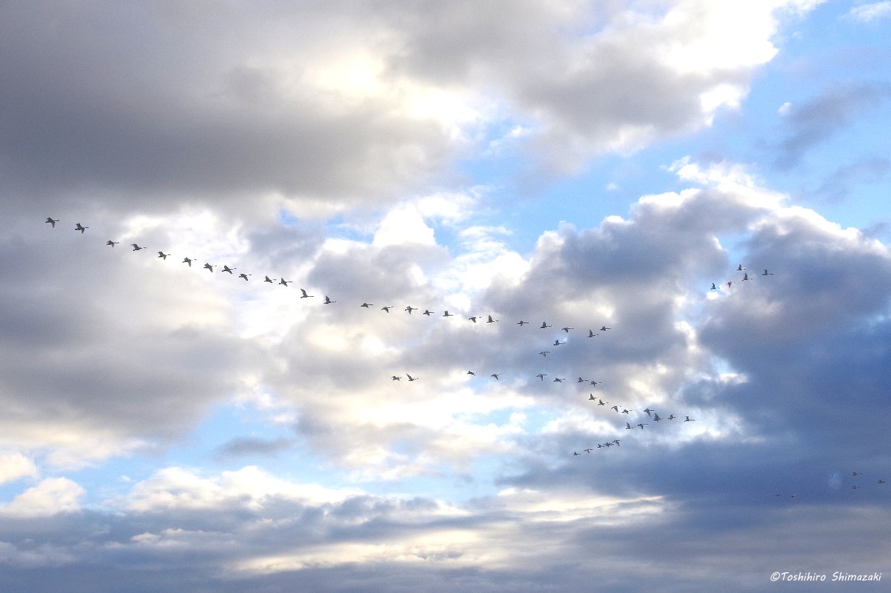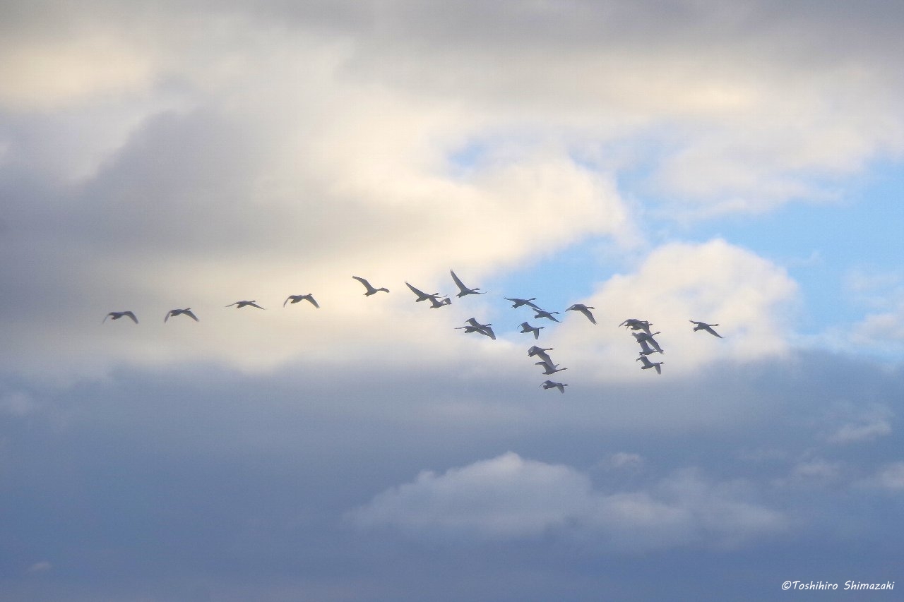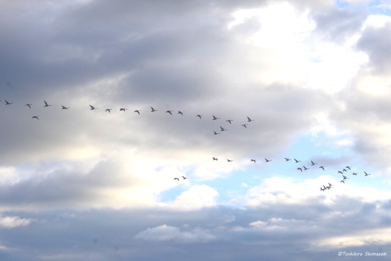 すぐ目の前を群れで飛んでいき、やがて鳴き声は遠ざかり、消えていきました。