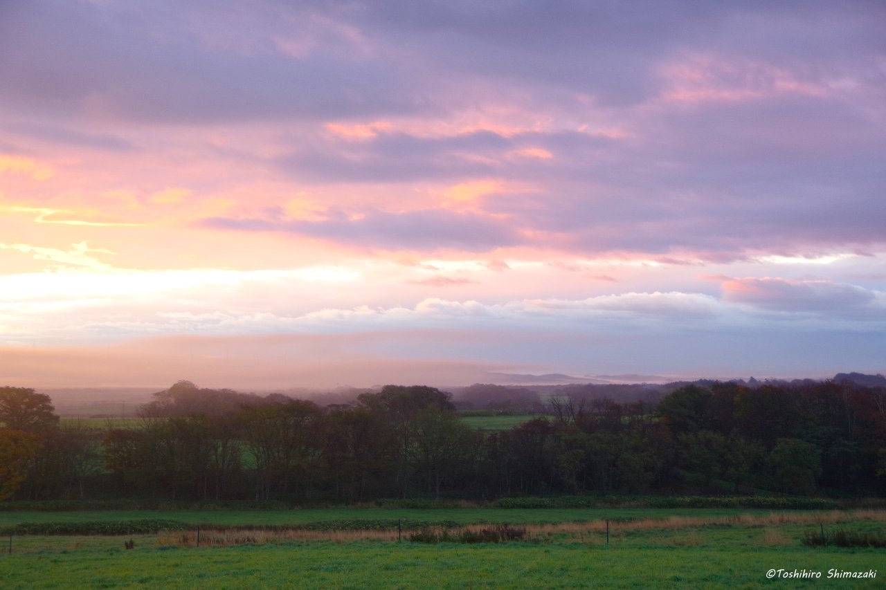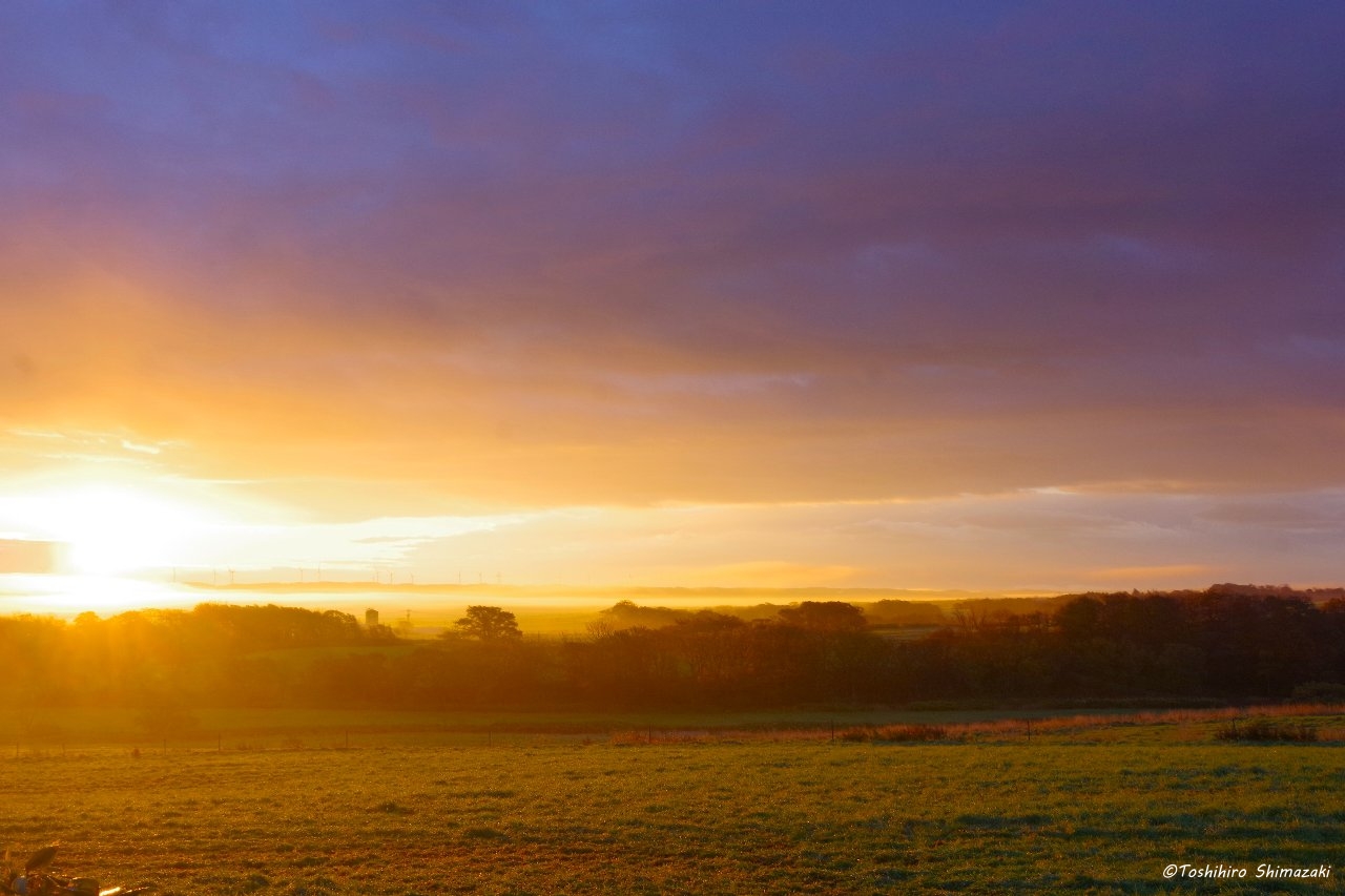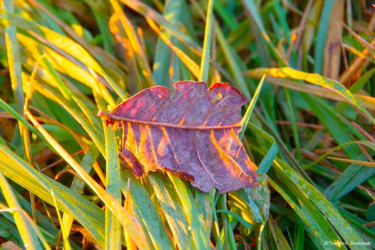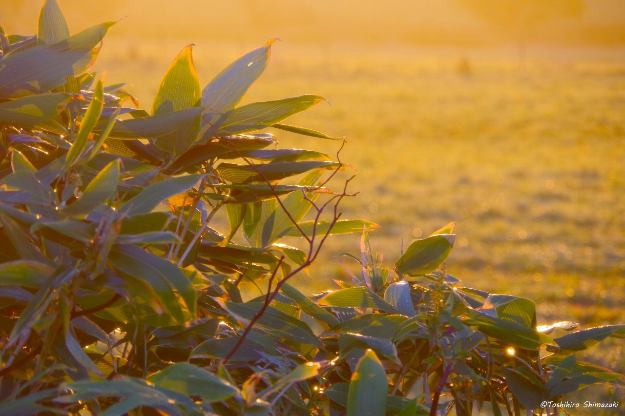 辺り一面の草には霜がおりていましたが、太陽が昇ると光が当たったところから霜はとけて雫に変わります。
