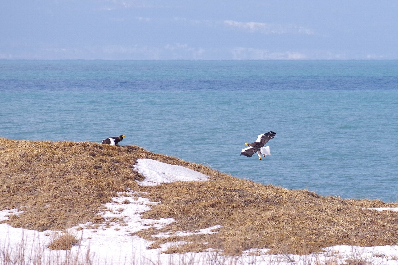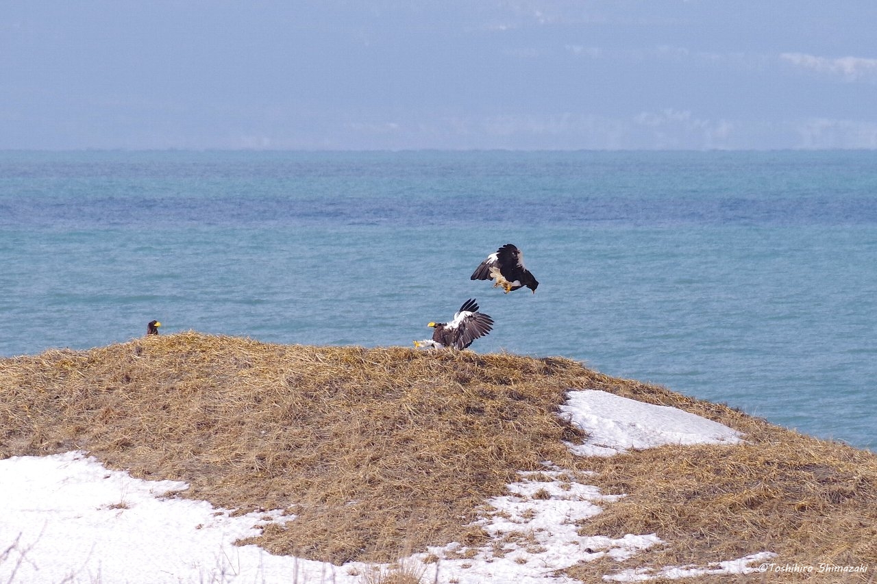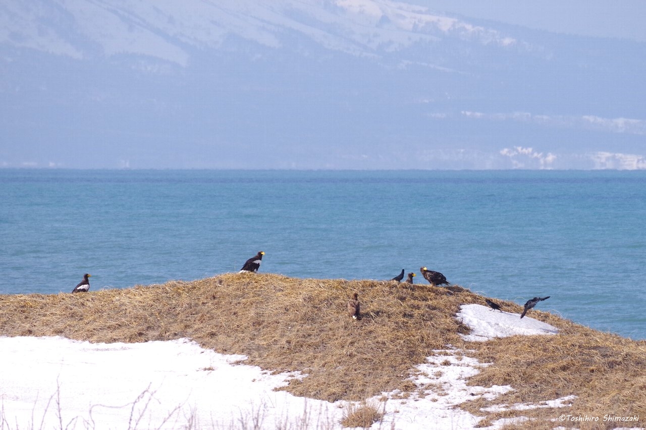 2026.03.04 稚内市 #利尻山 #鳥類 #2月 海岸線のワシたち(稚内市) 嵐の後の海岸線。 車で走っていると、動物が死んでいたのか、 遠くの方にたくさんのワシが集まっていました。 ワシ同士が激しく争う様子も見られて迫力がありました! «早すぎる春の訪れ(稚内市... 一覧
