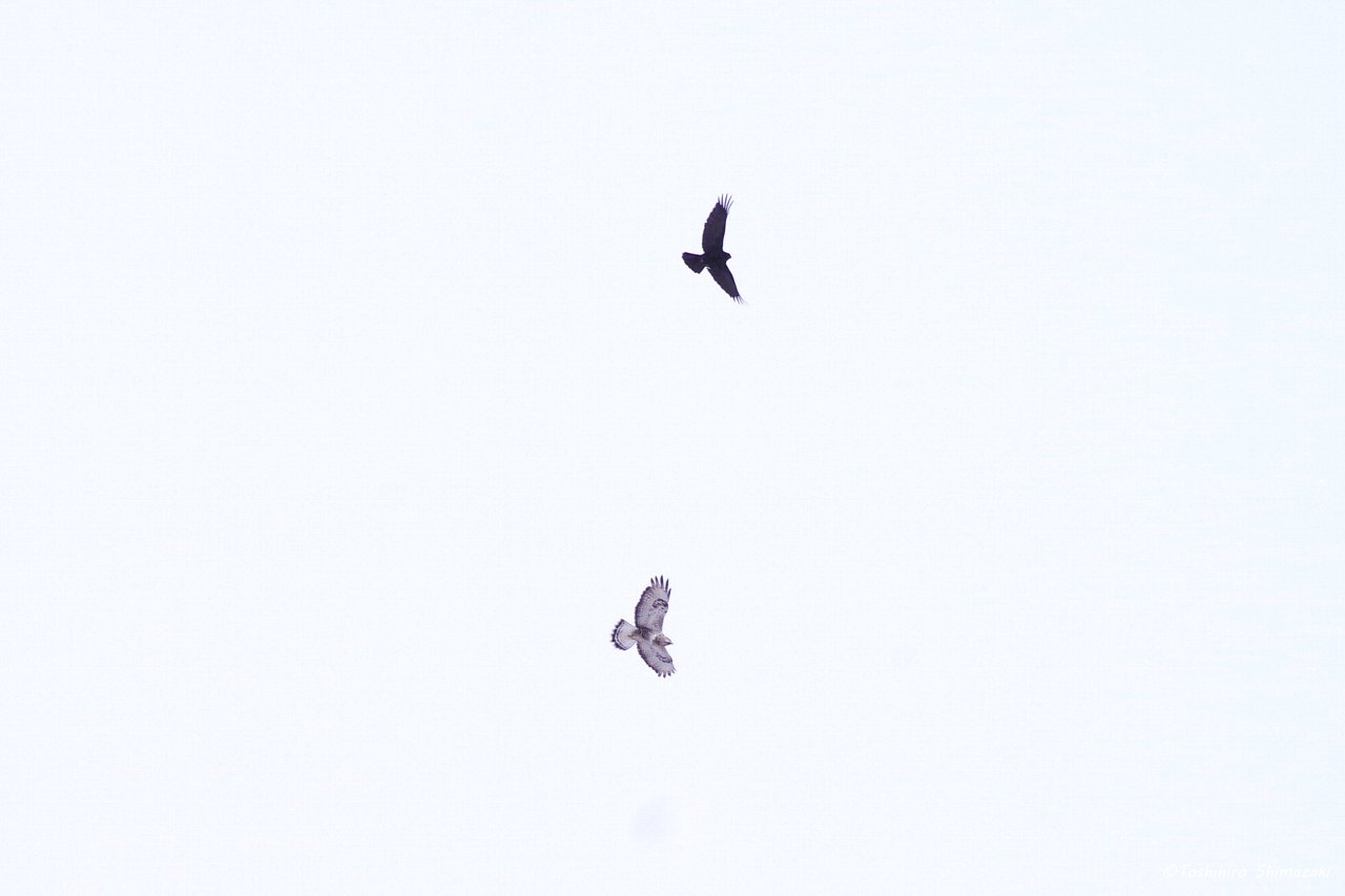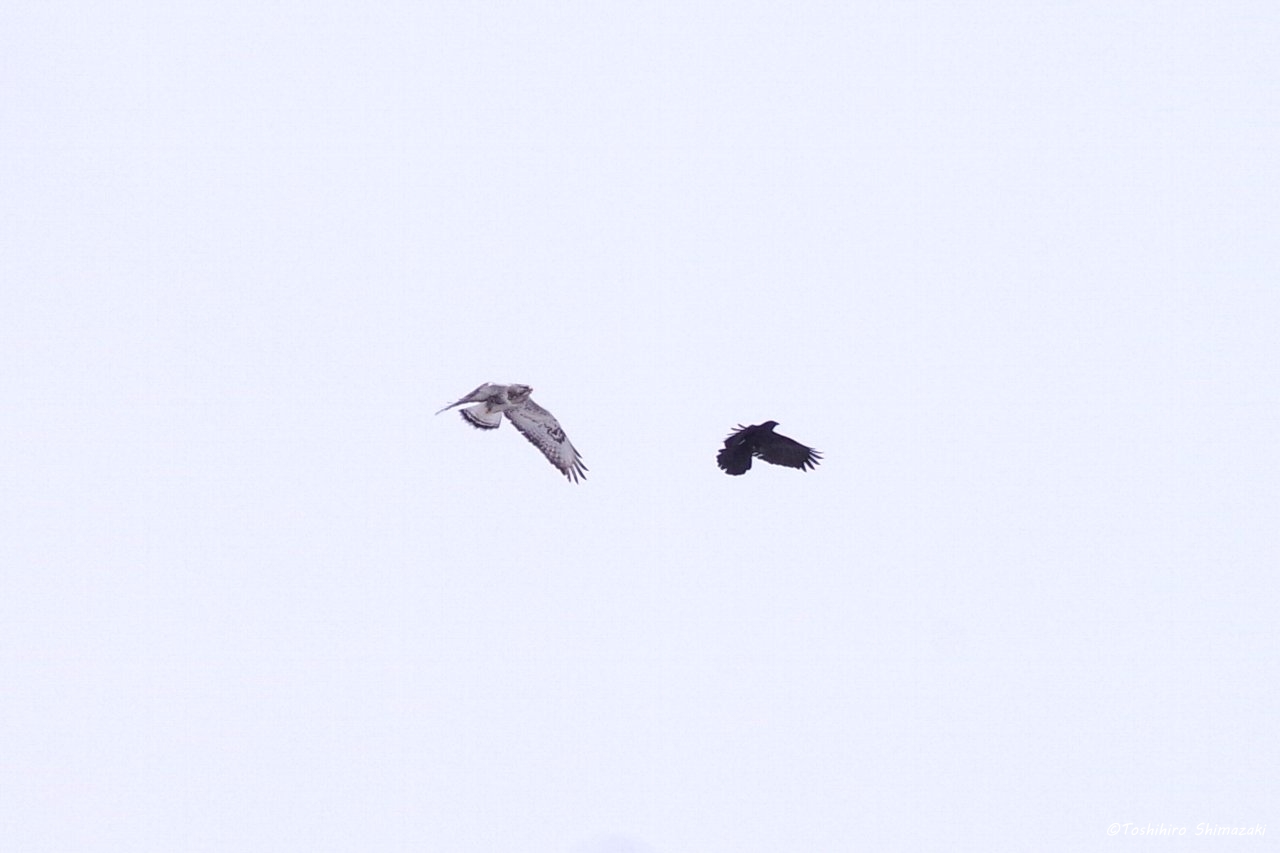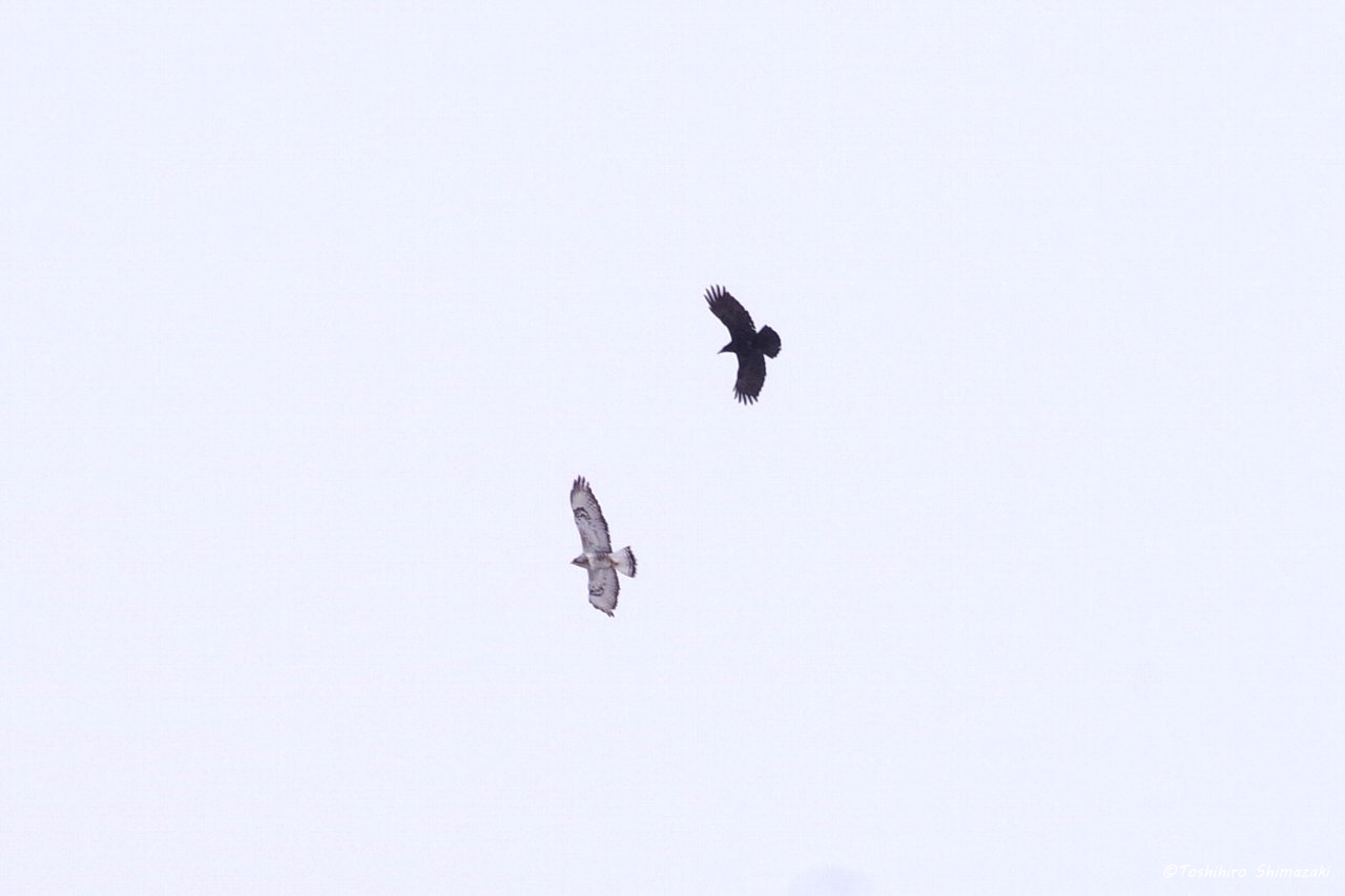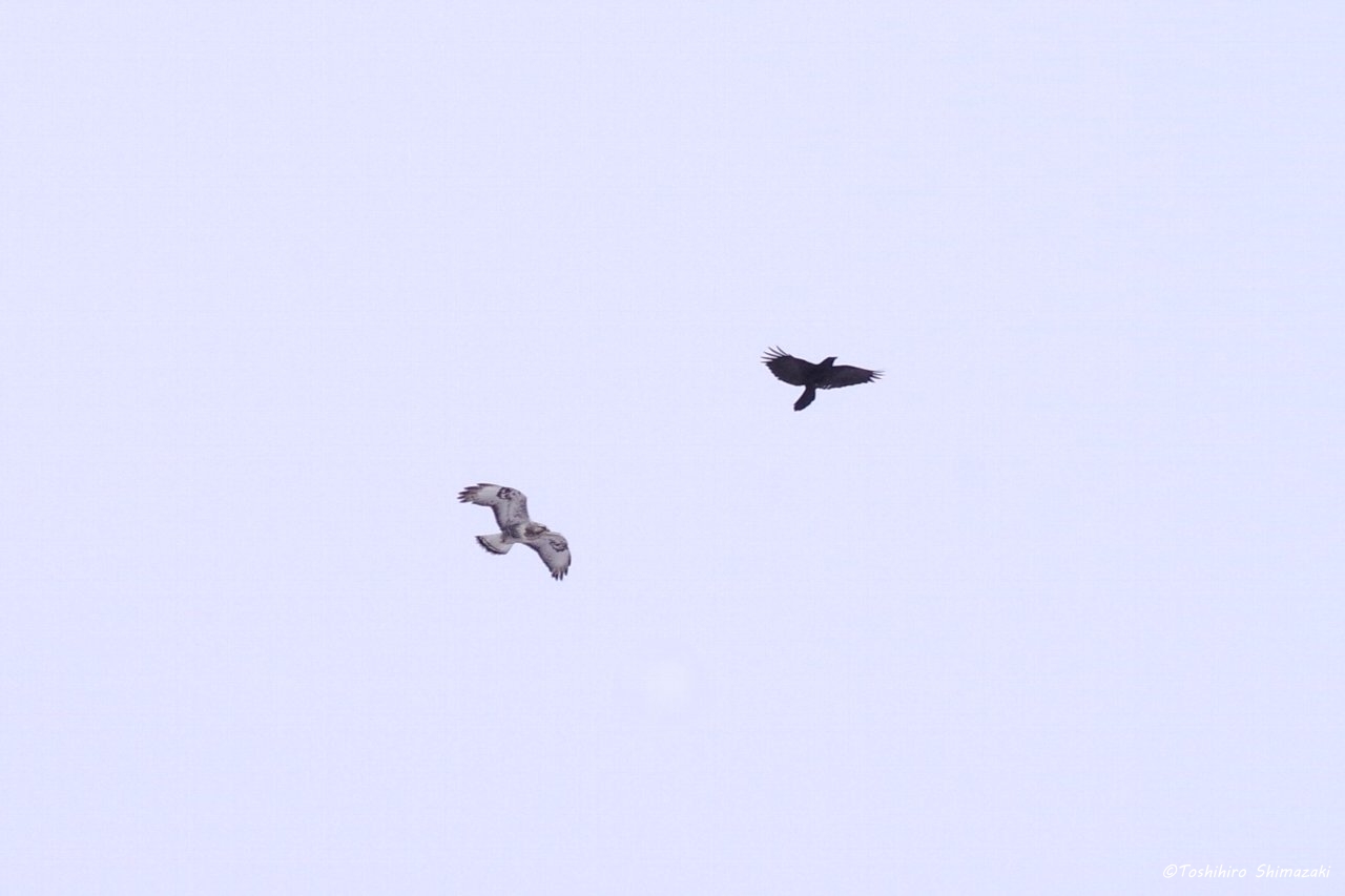 近くではケアシノスリにカラスがちょっかいを出している様子も見ることができました。