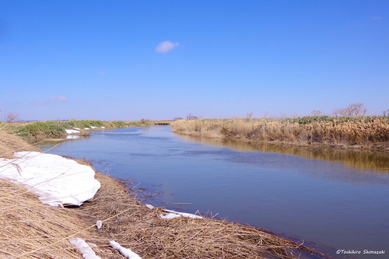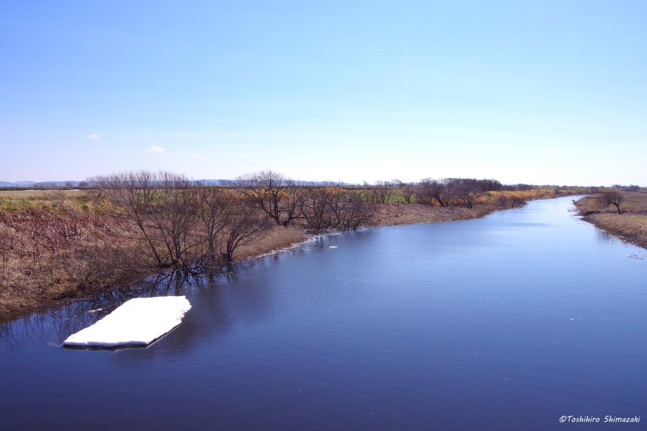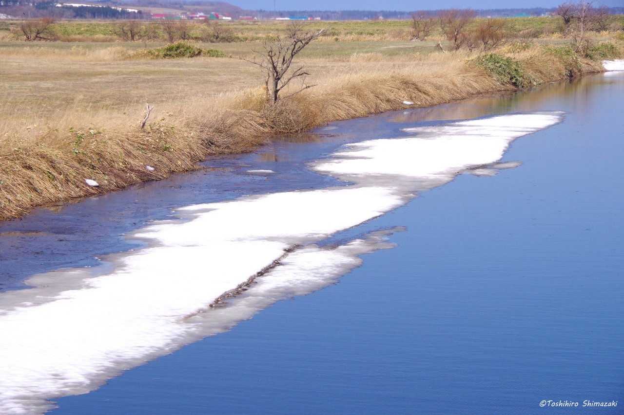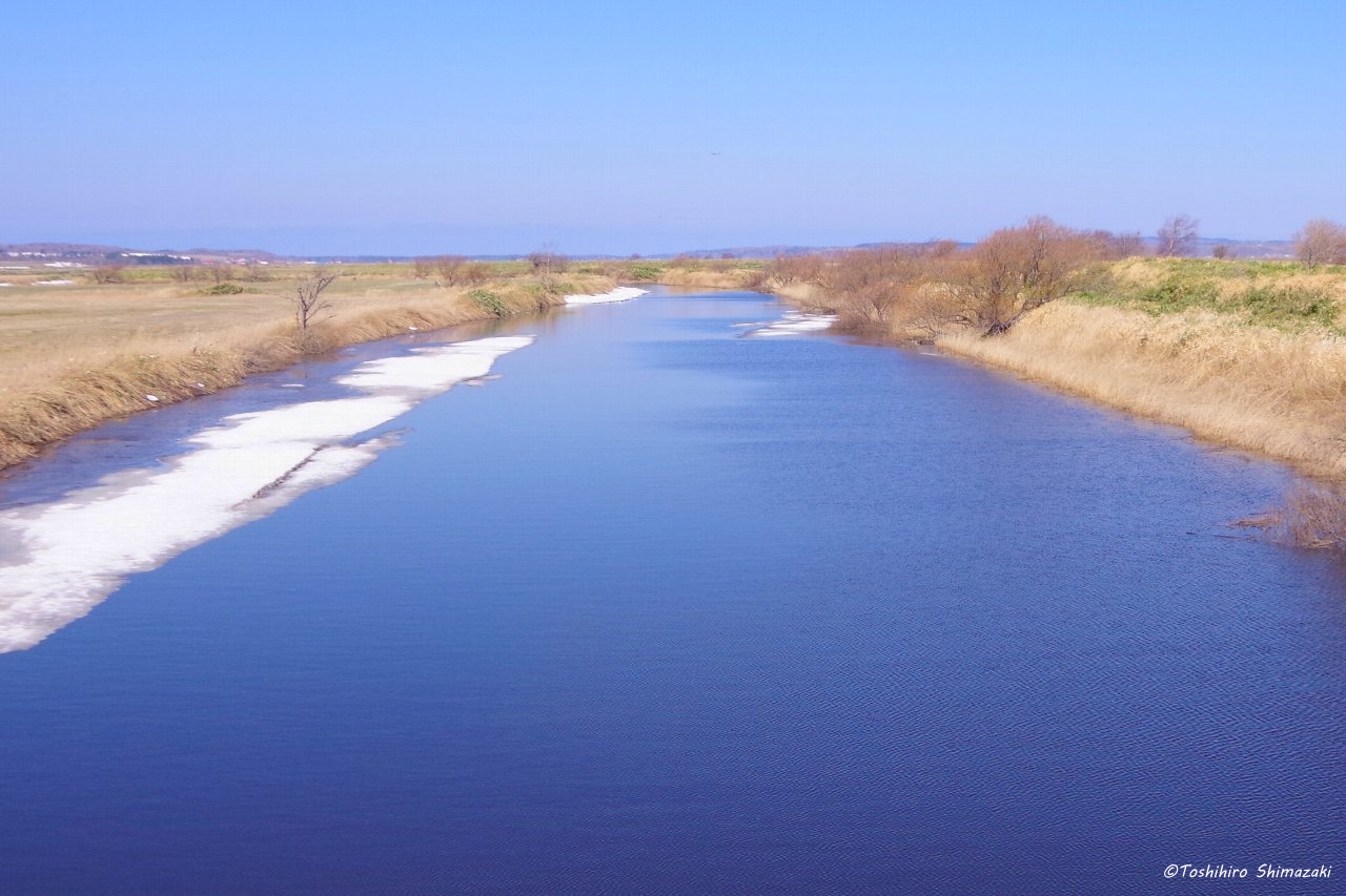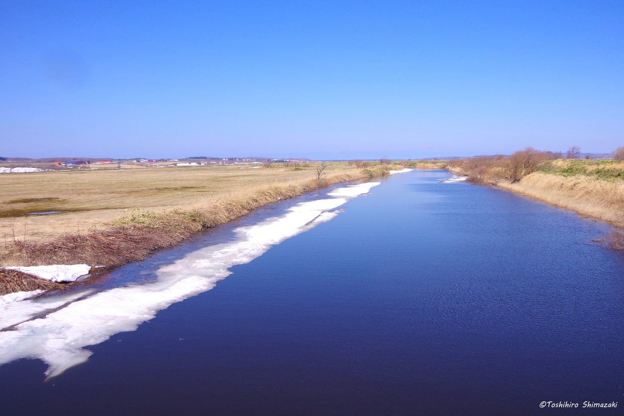 すっかり氷がとけて静かに流れていくサロベツ川。