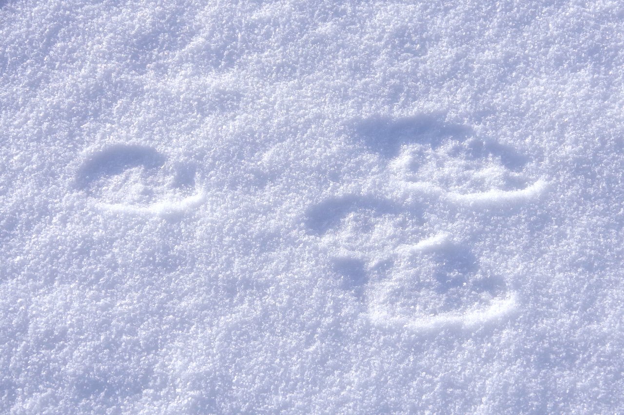 どこまでも続く眩しく輝く白い丘。ウサギの足跡もありました。