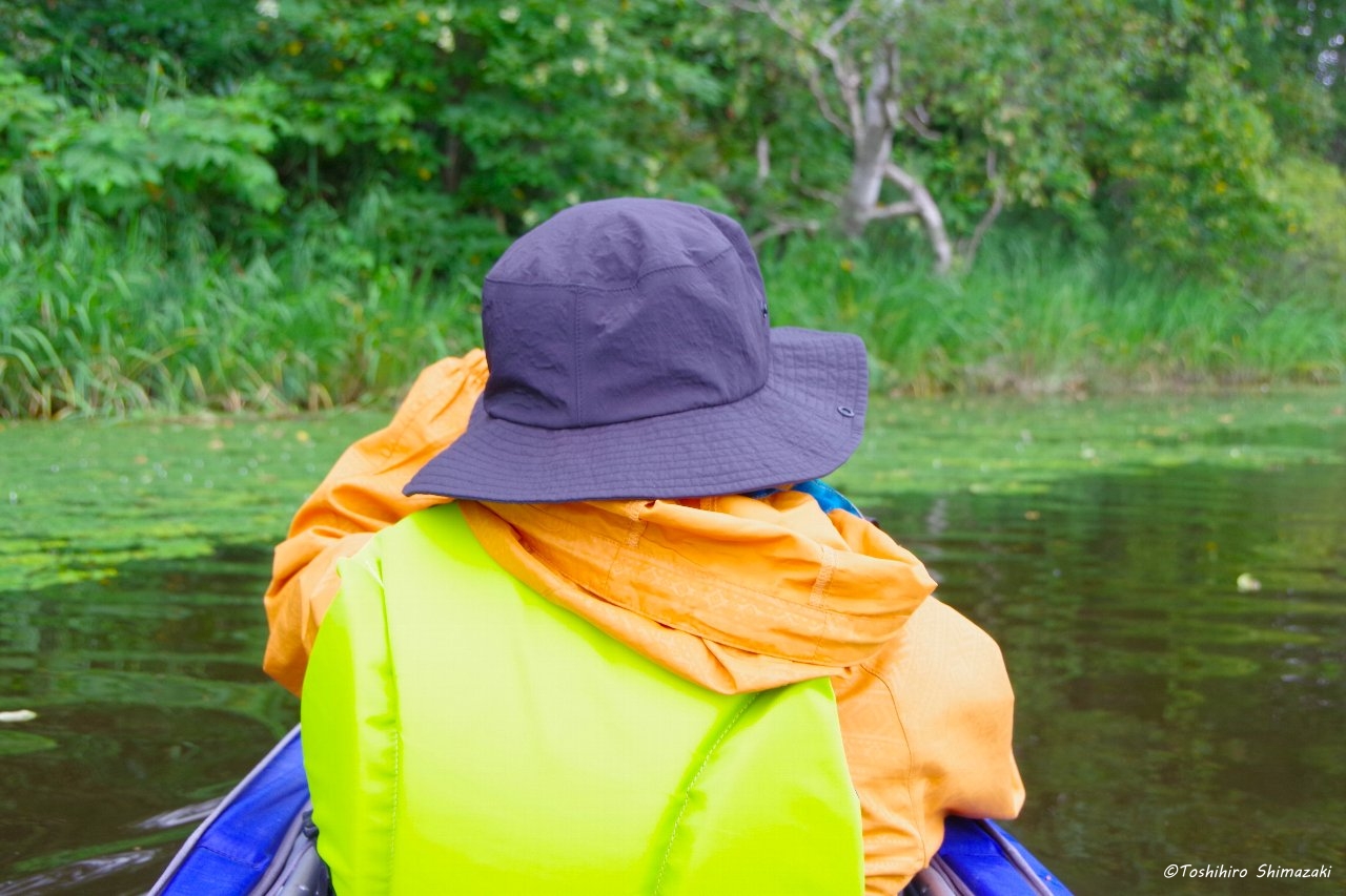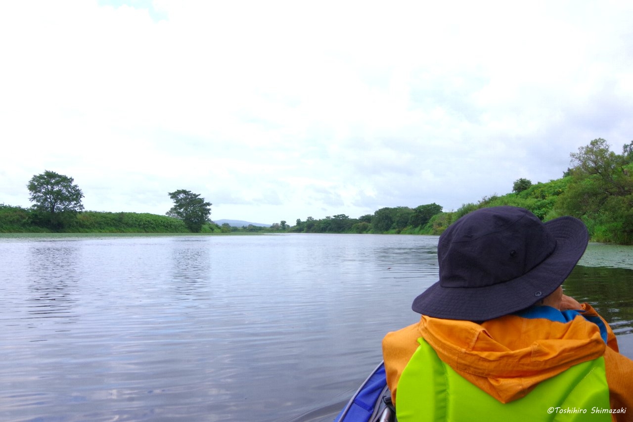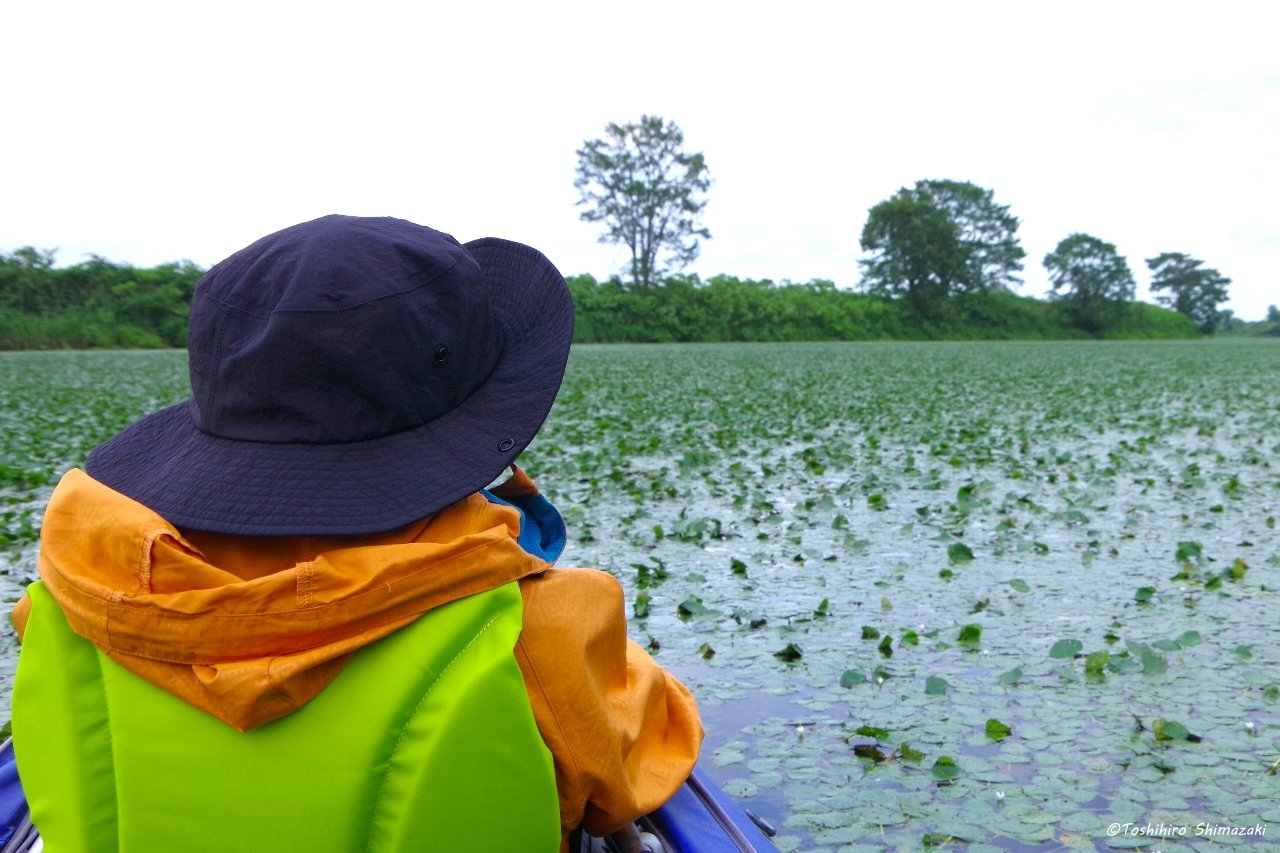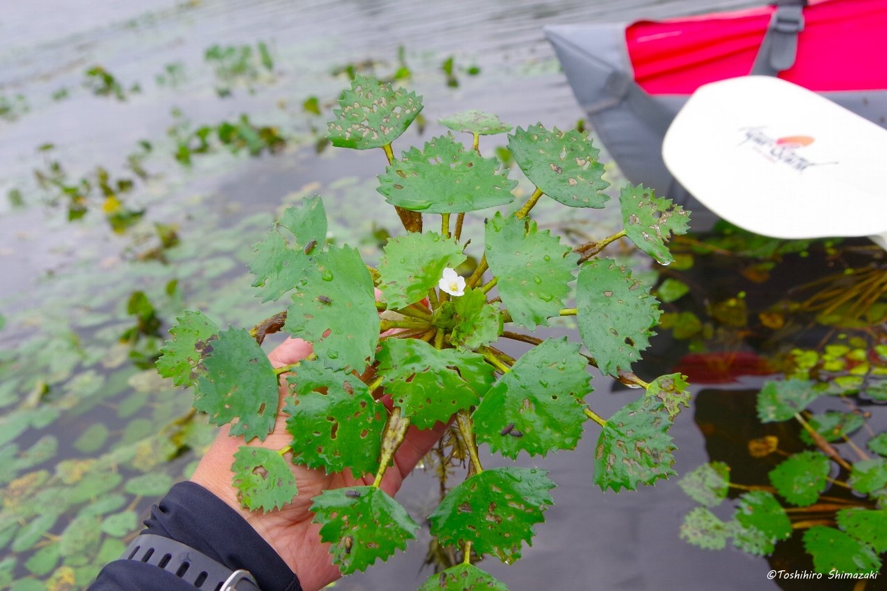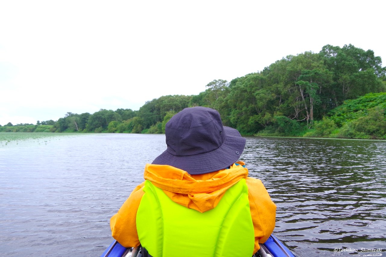 漕がなくても良いように、私と一緒に乗ってもらいました。最初はさすがに緊張気味でしたが、ヒシの花を見たり、鳥を見たりしているうちに少しずつ慣れて、最後は少しだけパドルで漕いでみていただきました。