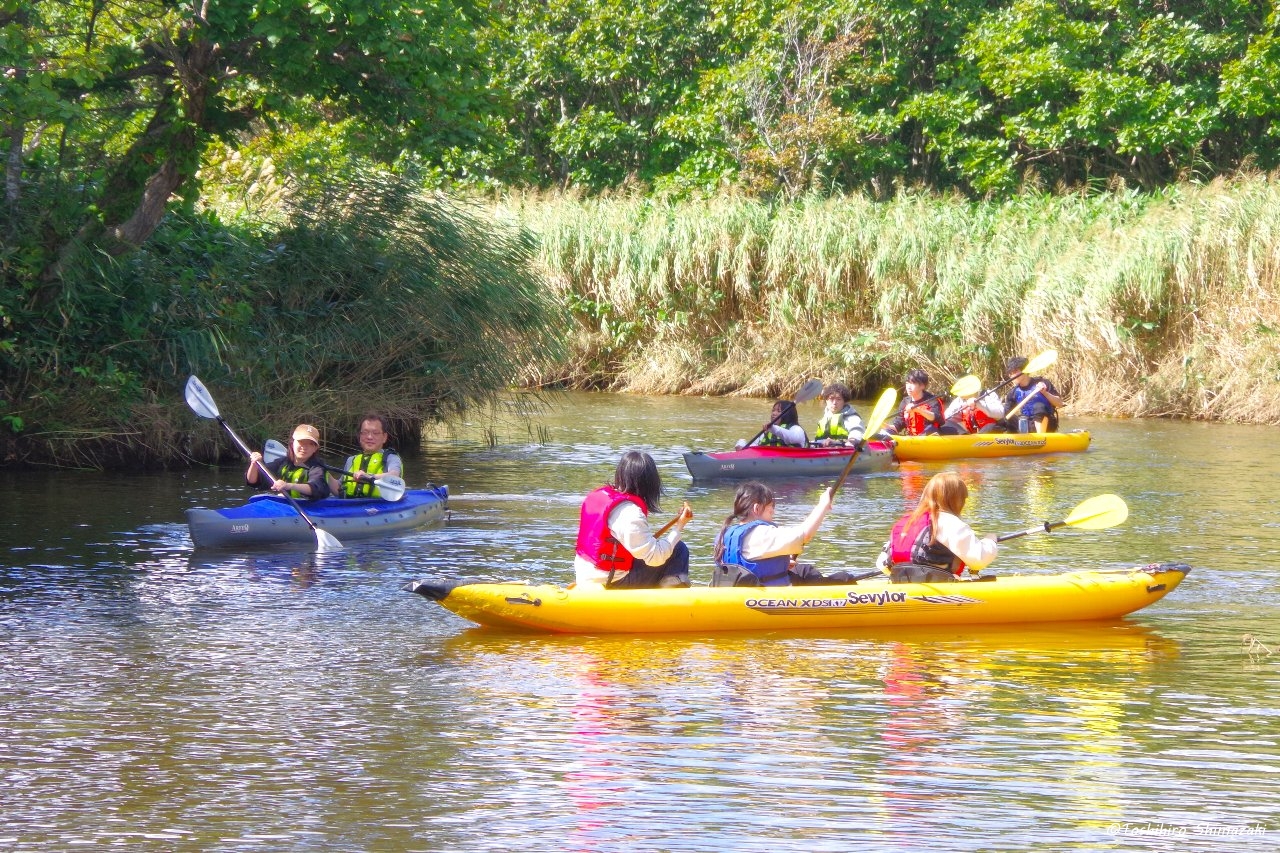 今年も北海学園大学と大阪成蹊大学の合同ゼミ研修の訪問があり、宗谷の自然の魅力や体験観光を知っていただくプログラムとして、勇知川カヤック&カヌーをご案内させていただきました。