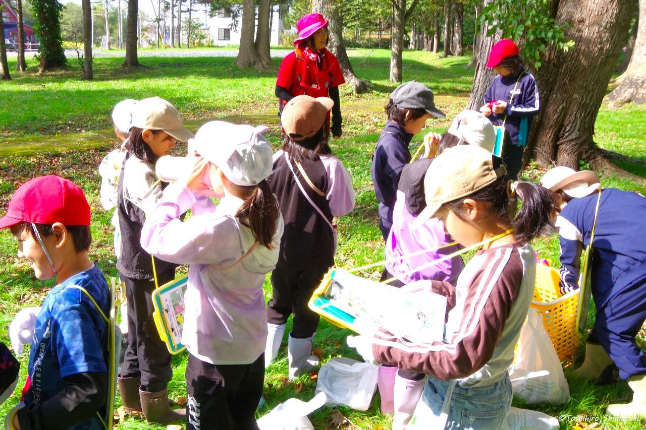 年4回ご依頼いただいている幌延小学校3年生の総合学習の講師ですが、秋は名林公園に行って来ました。