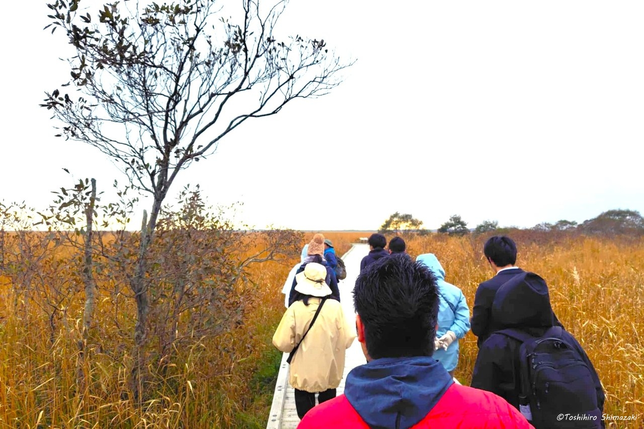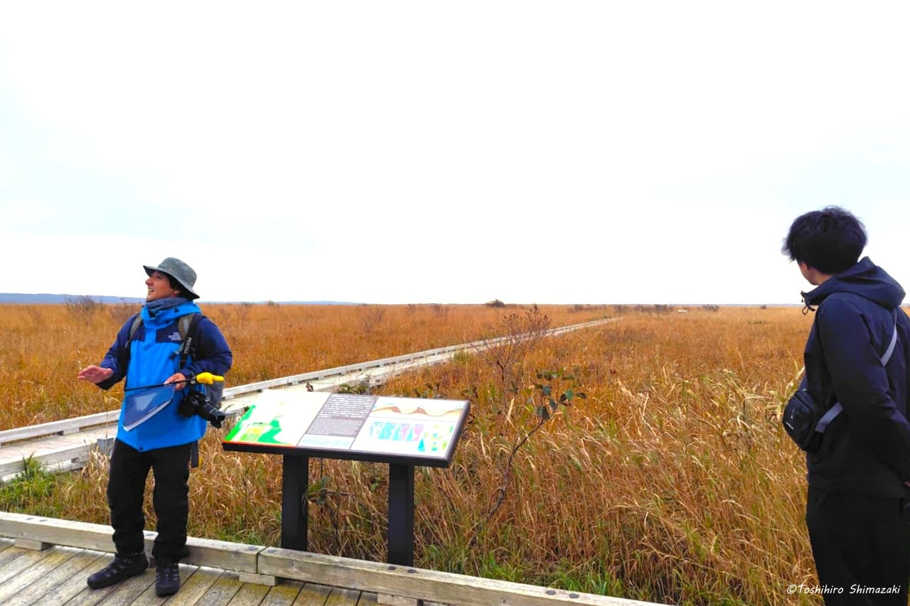 北海道内だけでなく、東京からお越しの方もいらっしゃったので、この日の気温は想像以上に寒かったと思いますが、黄金色に染まったサロベツ湿原をガイドさせていただきました。