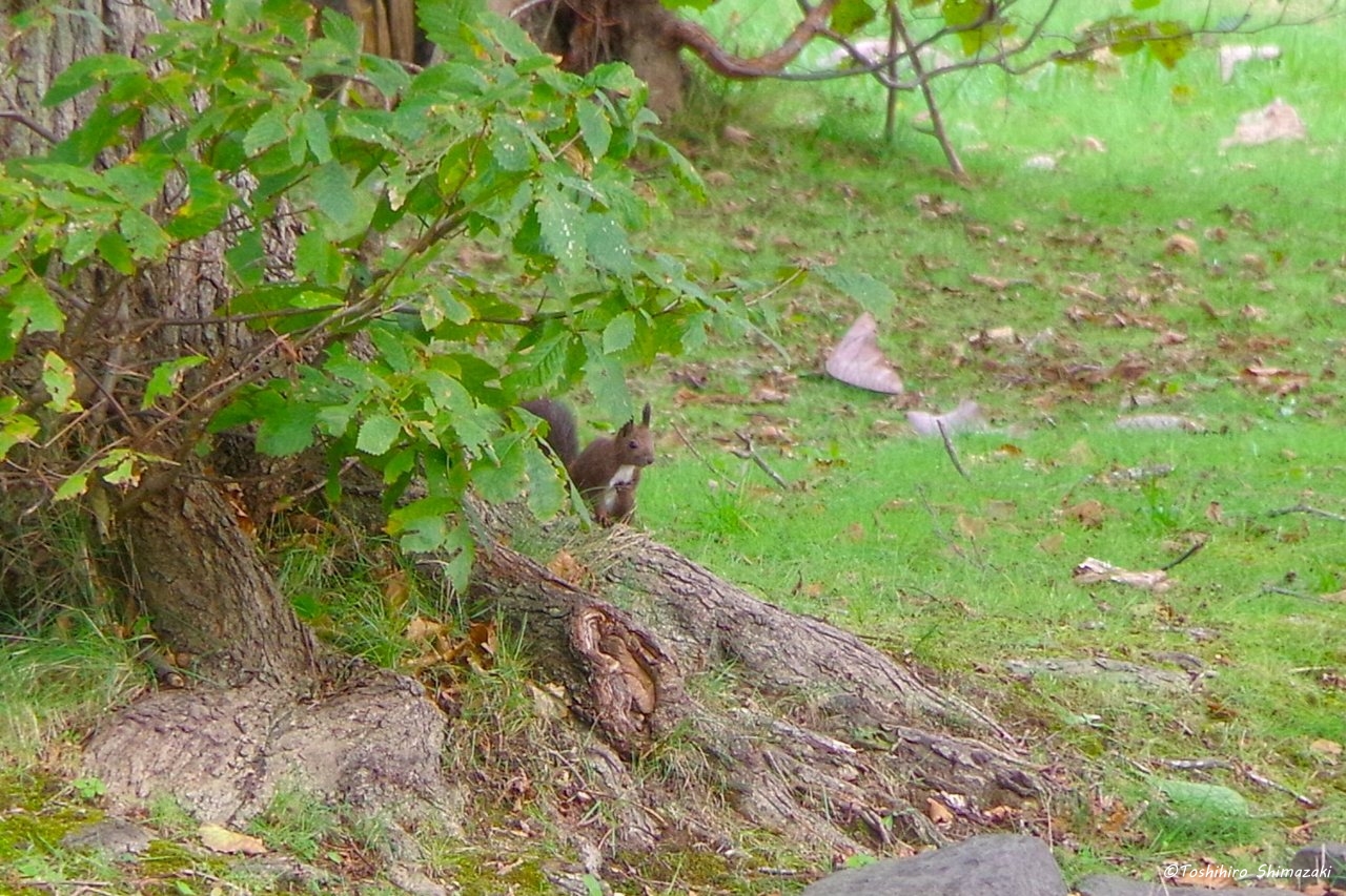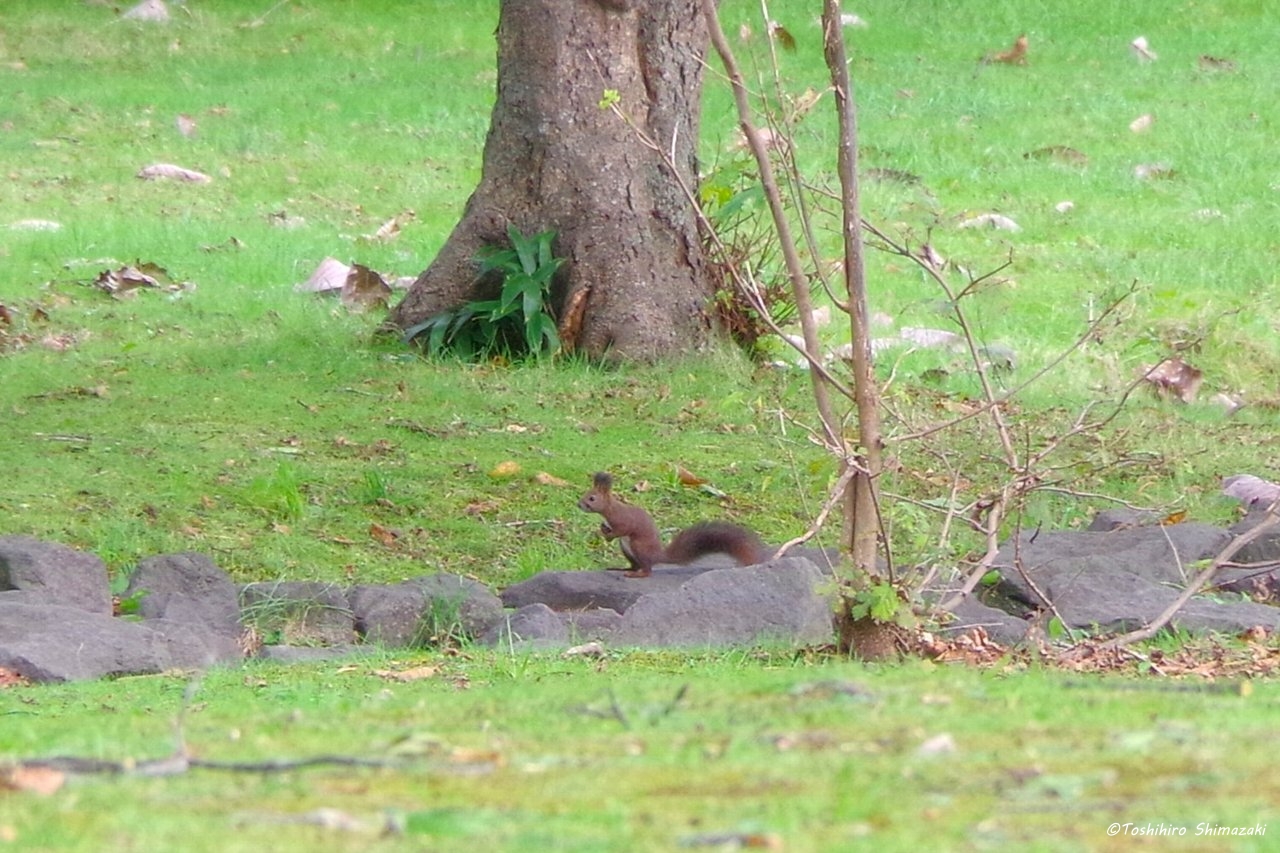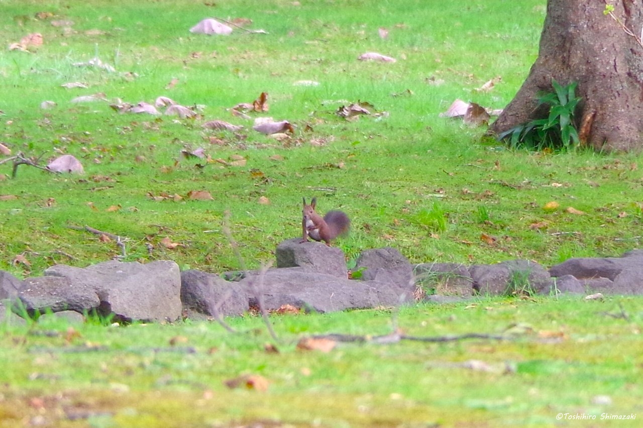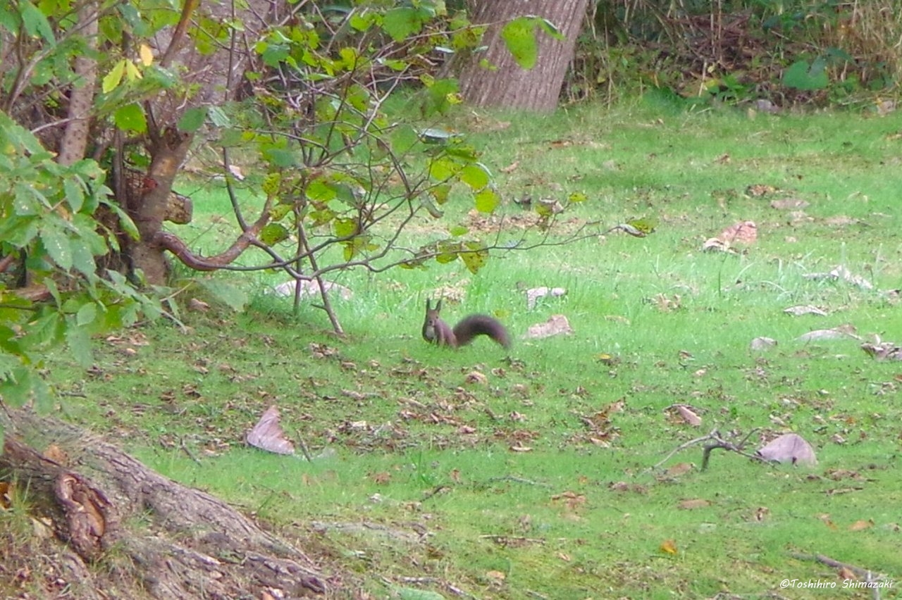 森に行くと一生懸命に木の実を集めて回るエゾリスがいました。