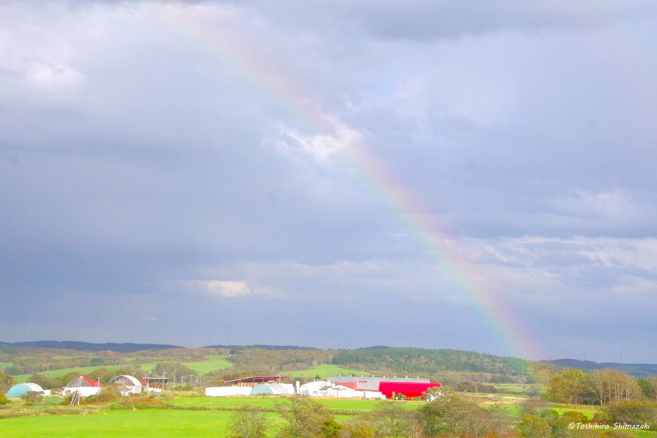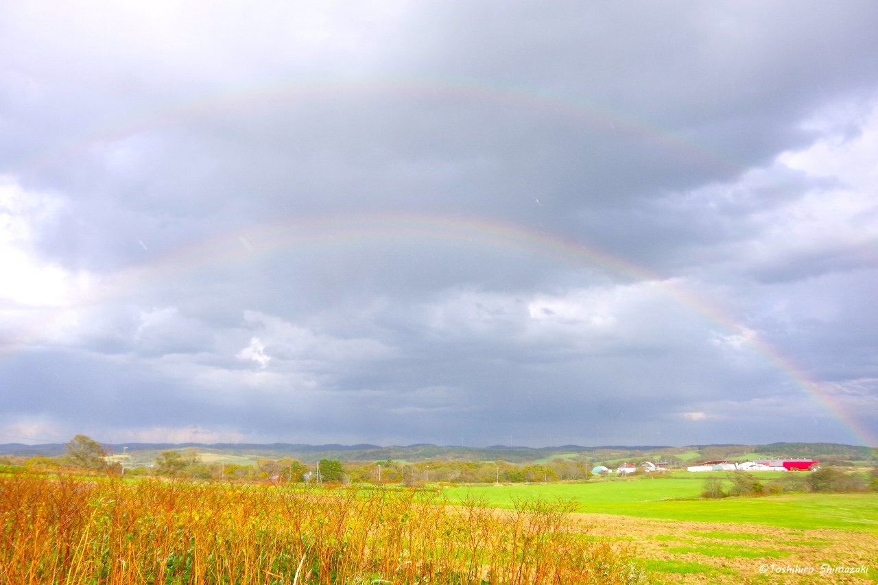 2025.11.03 自然情報 タンチョウと虹 丘の上に二重の虹が掛かった日、 タンチョウの親子に出会いました。 雲の下に利尻山も見えて、 雨上がりの美しい秋の夕方でした。 «ノシャップの丘を歩く 一覧