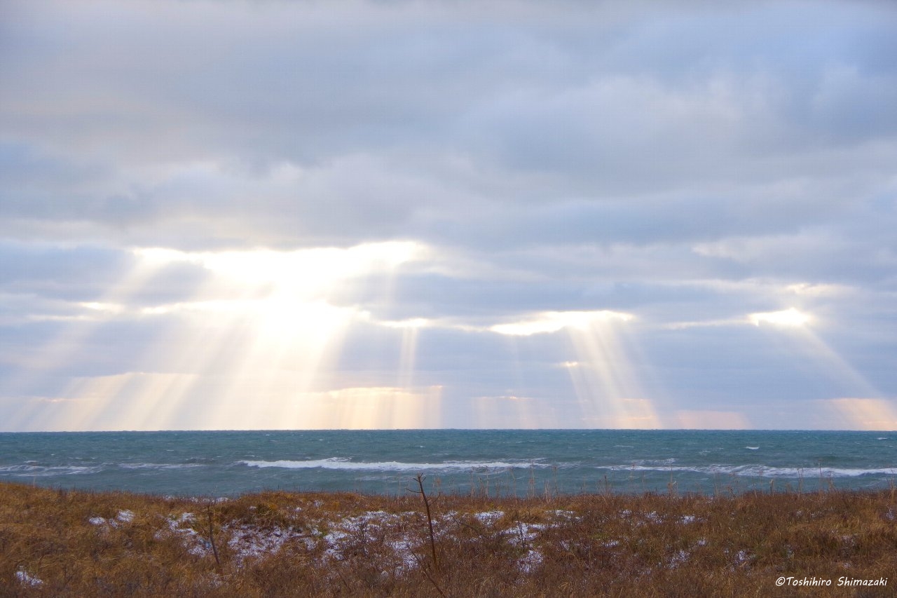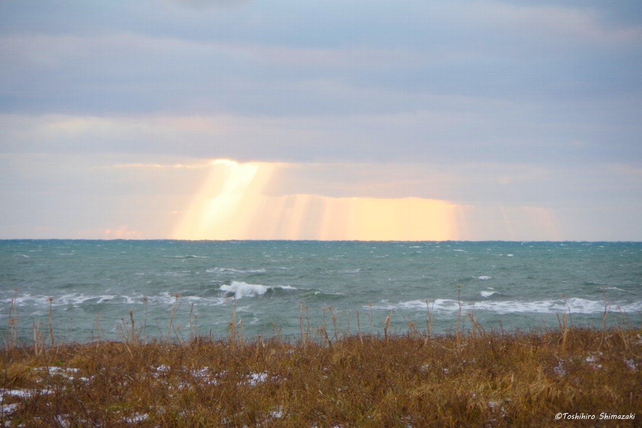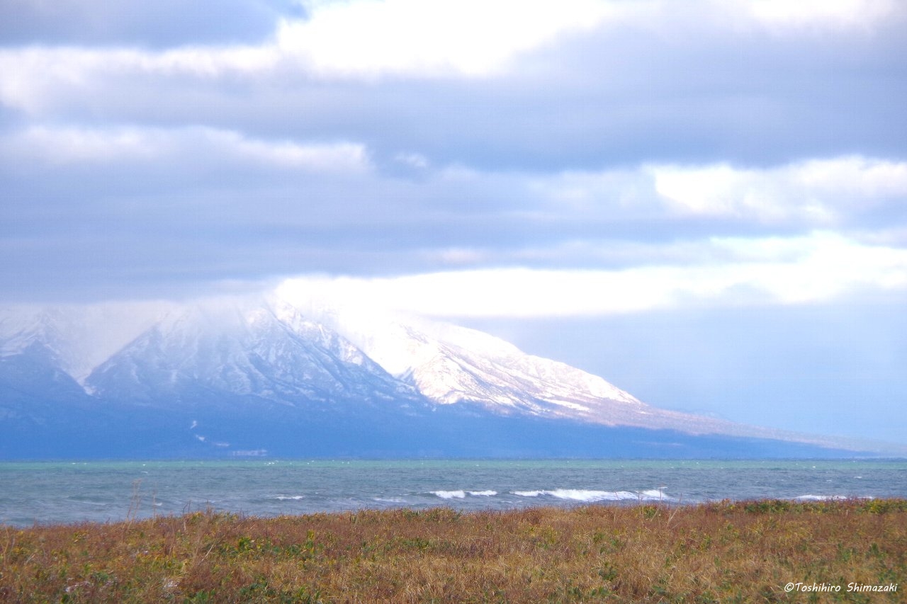鉛色の日本海は冬らしく白波が立ち、雲の下に見えている利尻島はいよいよ麓の方まで白くなってきました。