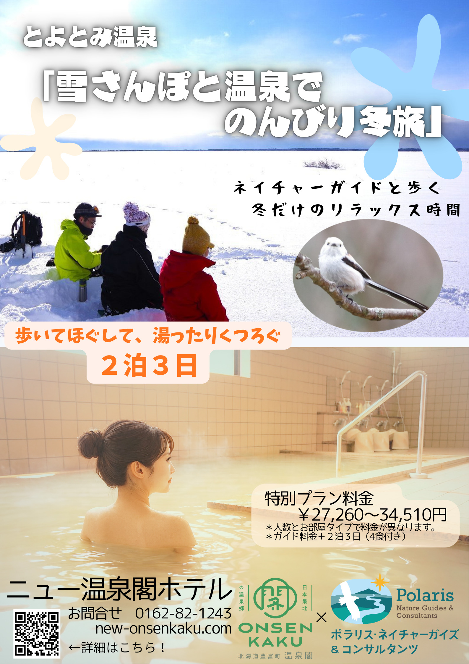 この冬、ニュー温泉閣ホテルさんの宿泊プランの中に、弊社のスノーシューガイド付きのお得な2泊3日の宿泊プランが登場します。