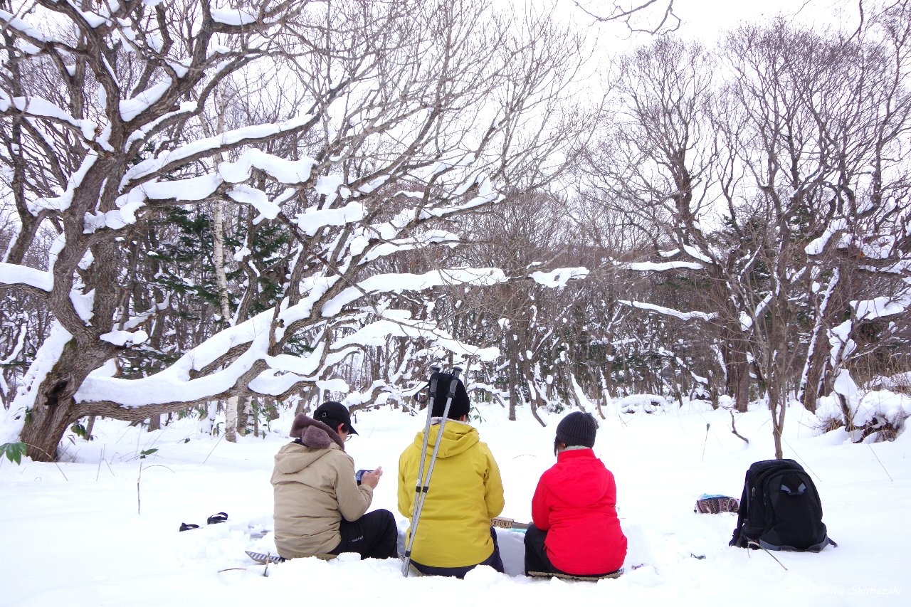 年が明けてもスノーシューをするにはまだ積雪が足りないところもあるので(森の中はガイド付きならギリギリ行ける程度)、歩きにくい場所もありましたが、普段は入れない冬の森の中の散策をお楽しみいただけたよう嬉しく思いました。