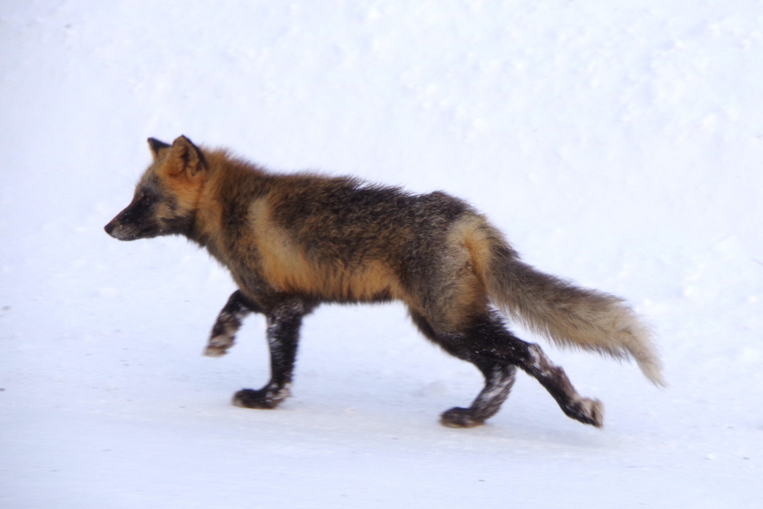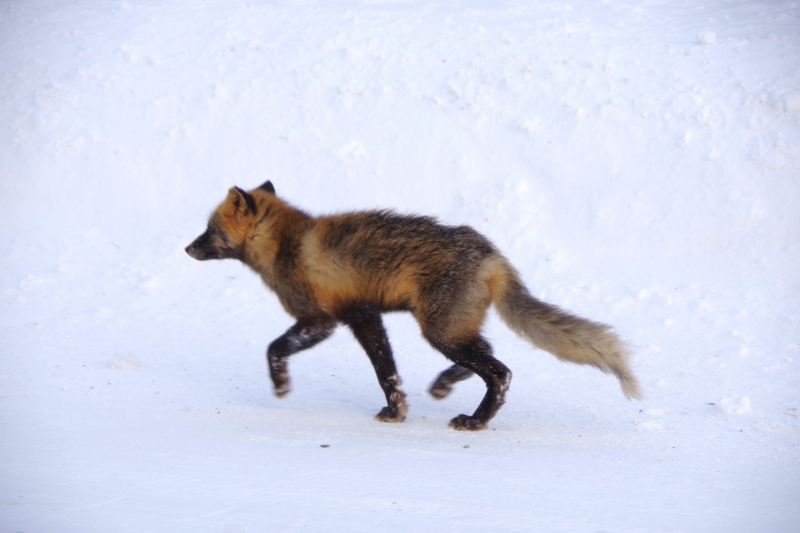 サロベツの海岸線で時々見かける「十字狐(三毛狐)」。普通のキツネの毛並みとは明らかに違うので、初めて見ると「タヌキか?犬か?」と思ってしまう方もいるかもしれません。