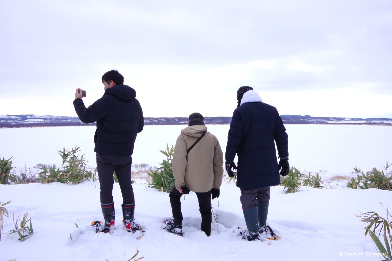 前日にサロベツ湿原を散策した東京のお客様と、翌日は宗谷ふれあい公園へ。同じスノーシューというアクティビティでも、場所が変われば、また違った魅力が味わえるのがこのアクティビティの良さでもあります。