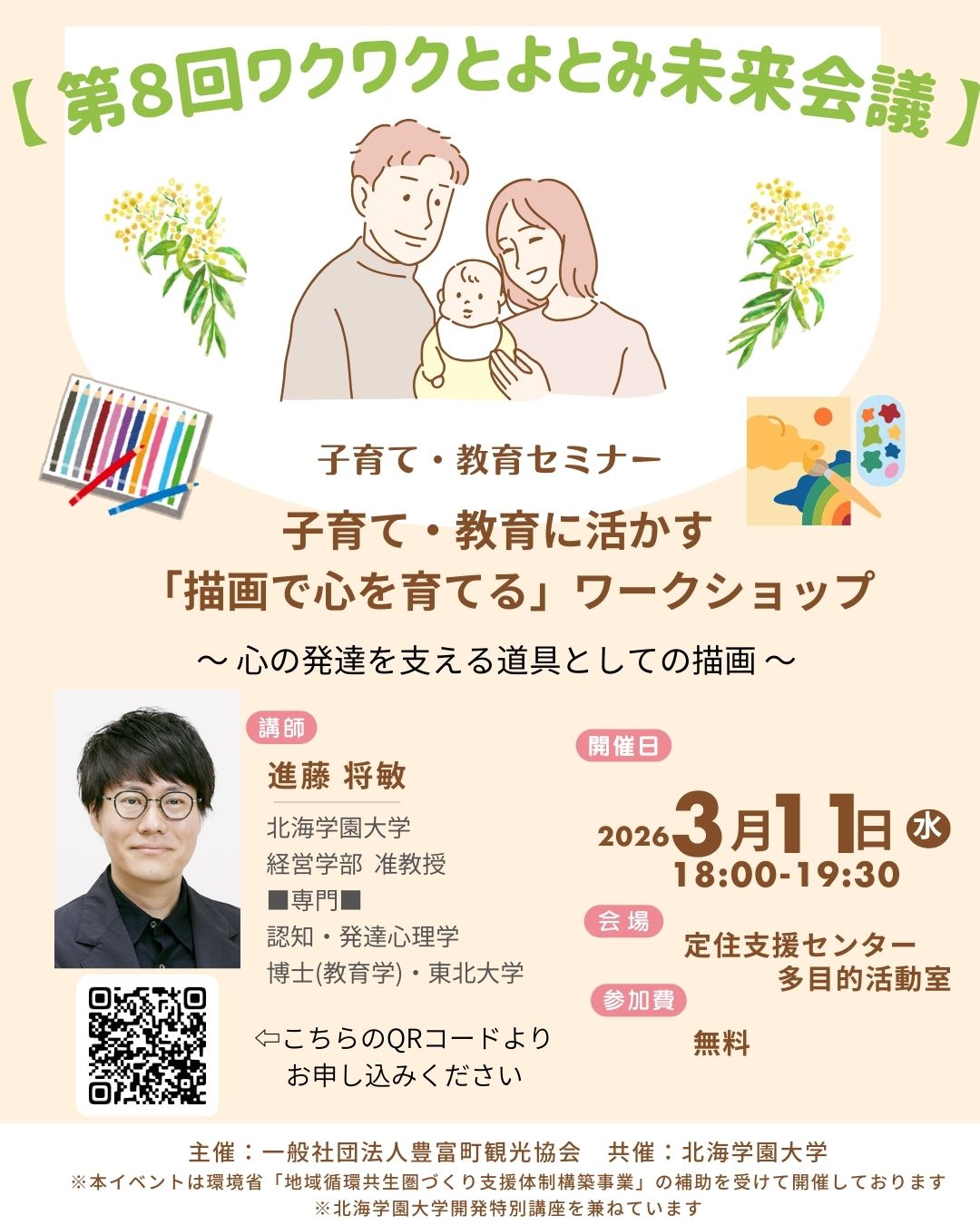 こちらは「ワクワクとよとみ未来会議」の一環として、豊富町観光協会さんと北海学園大学さんとの共催で行われる子供の発達についてのセミナーの第2弾のお知らせです。※写真は昨年の様子です。