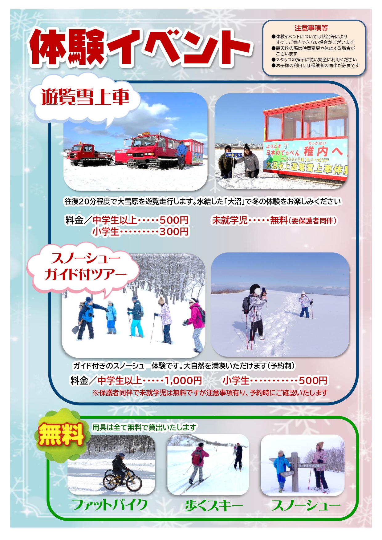 私の方でも、結氷した稚内大沼を一望できるシュプントー展望台を訪れる絶景のスノーシューガイド(大人1,000円、子供500円)を土日祝日を中心に行っておりますので、ぜひご参加下さいませ。