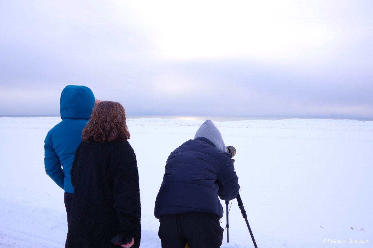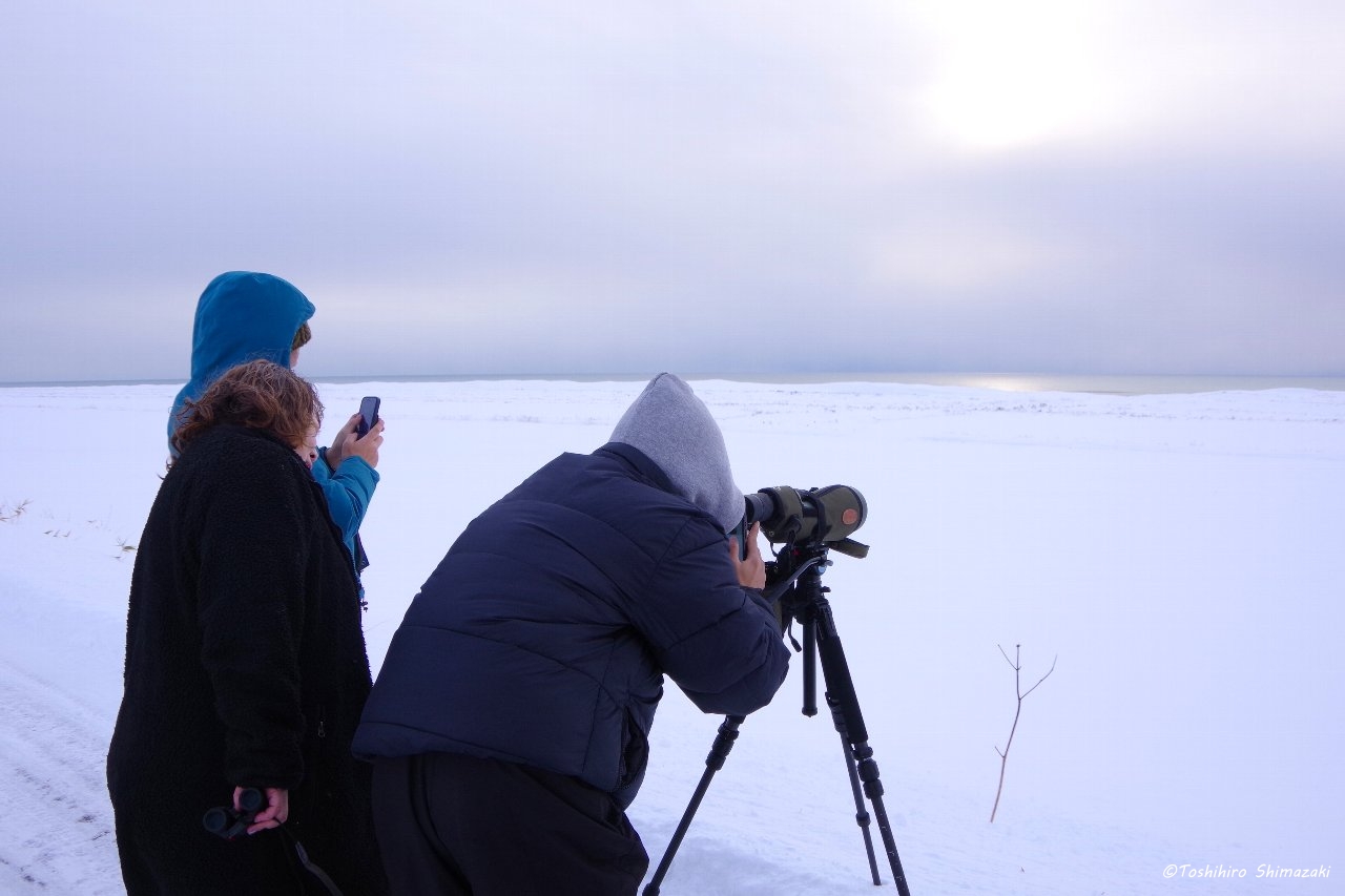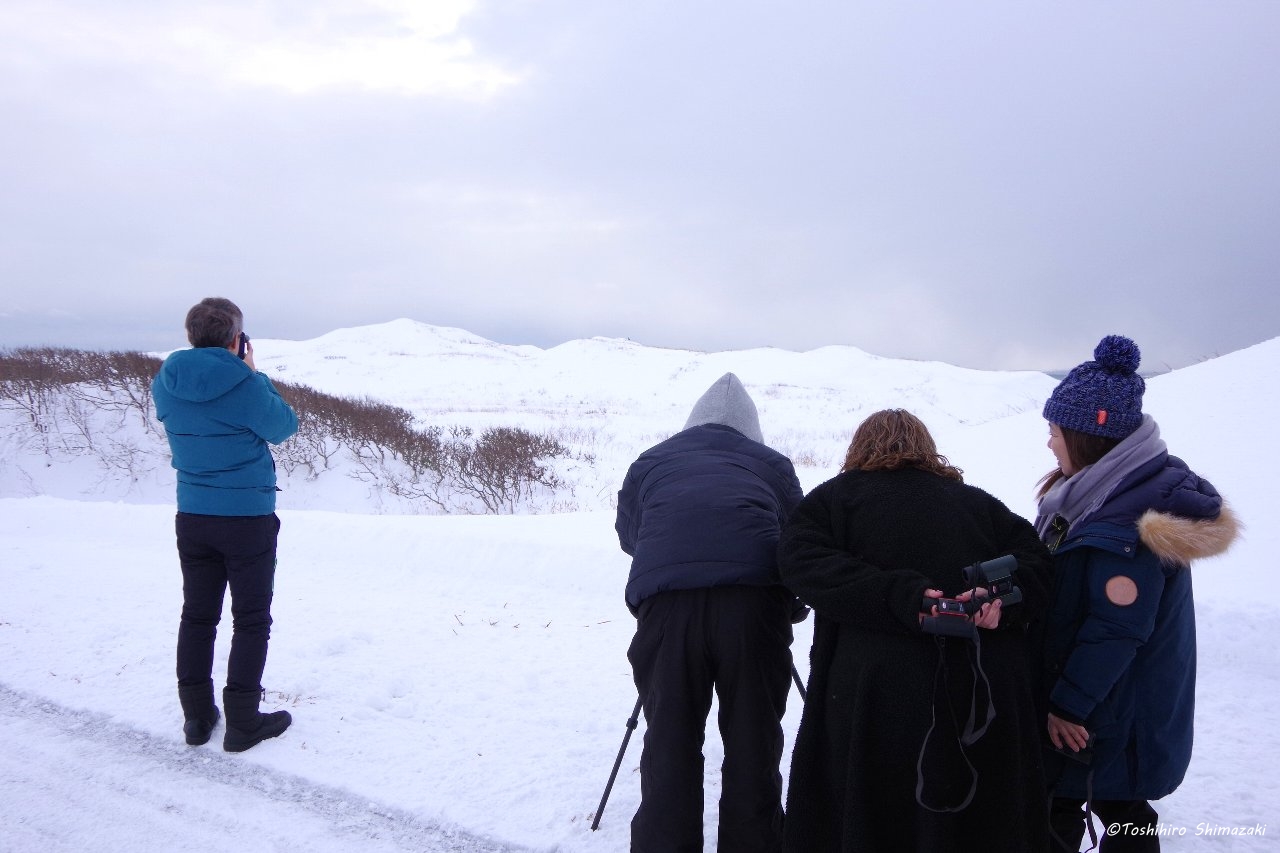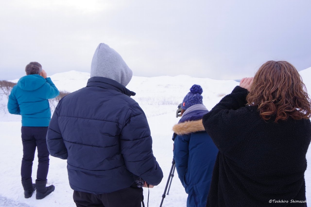 存在感のあるその大きさに驚かれていました。その後は雪の上に佇むオオワシをゆっくり観察したり、すぐ近くを飛翔する様子などを何度も観察することできました。