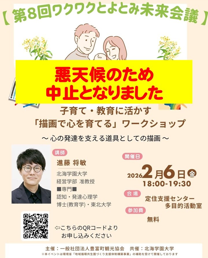 ワクワクとよとみ未来会議の関わりで開催が予定されておりました下記のイベントは悪天候が予想されているため、残念ながら中止となりました。