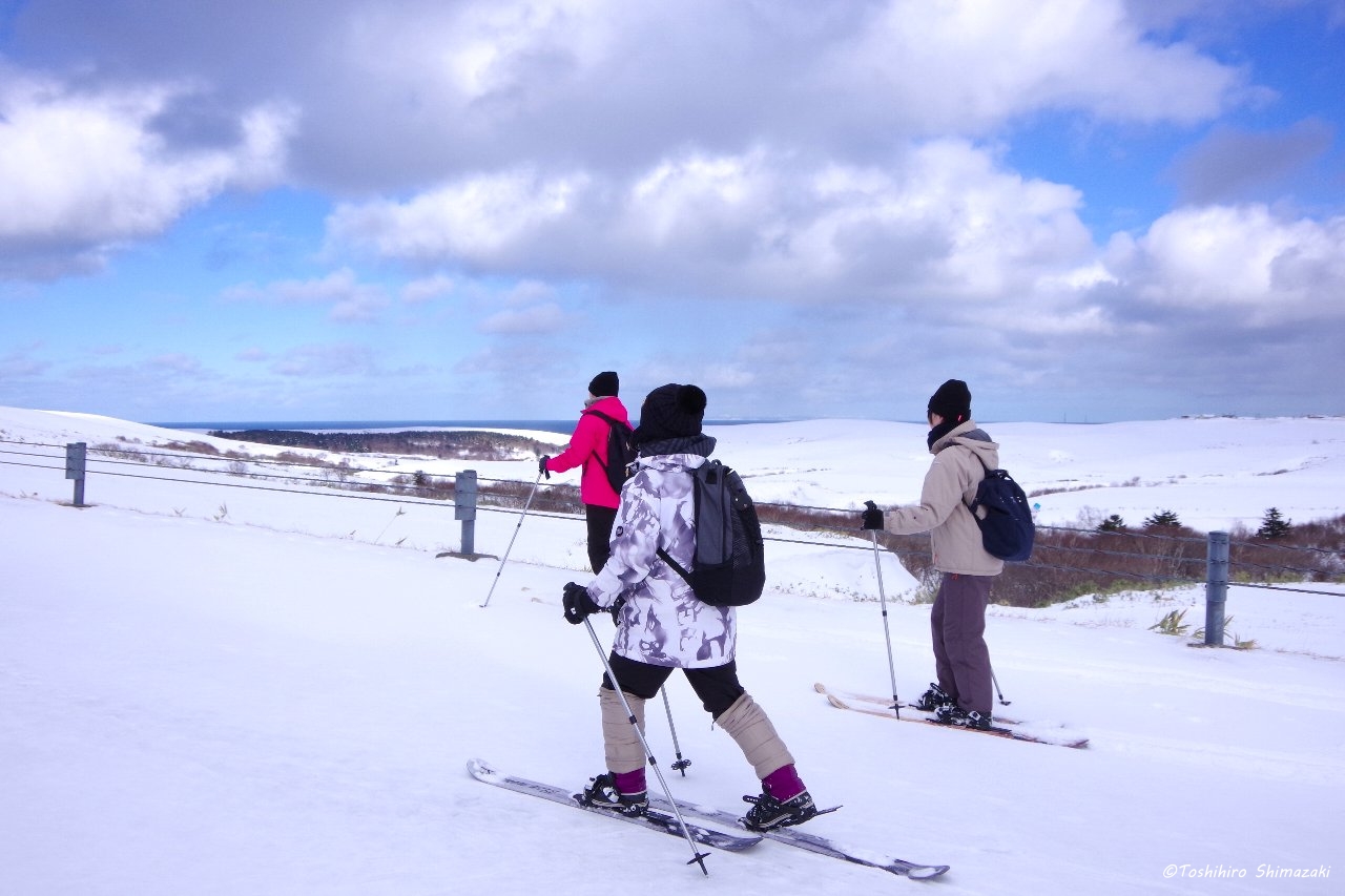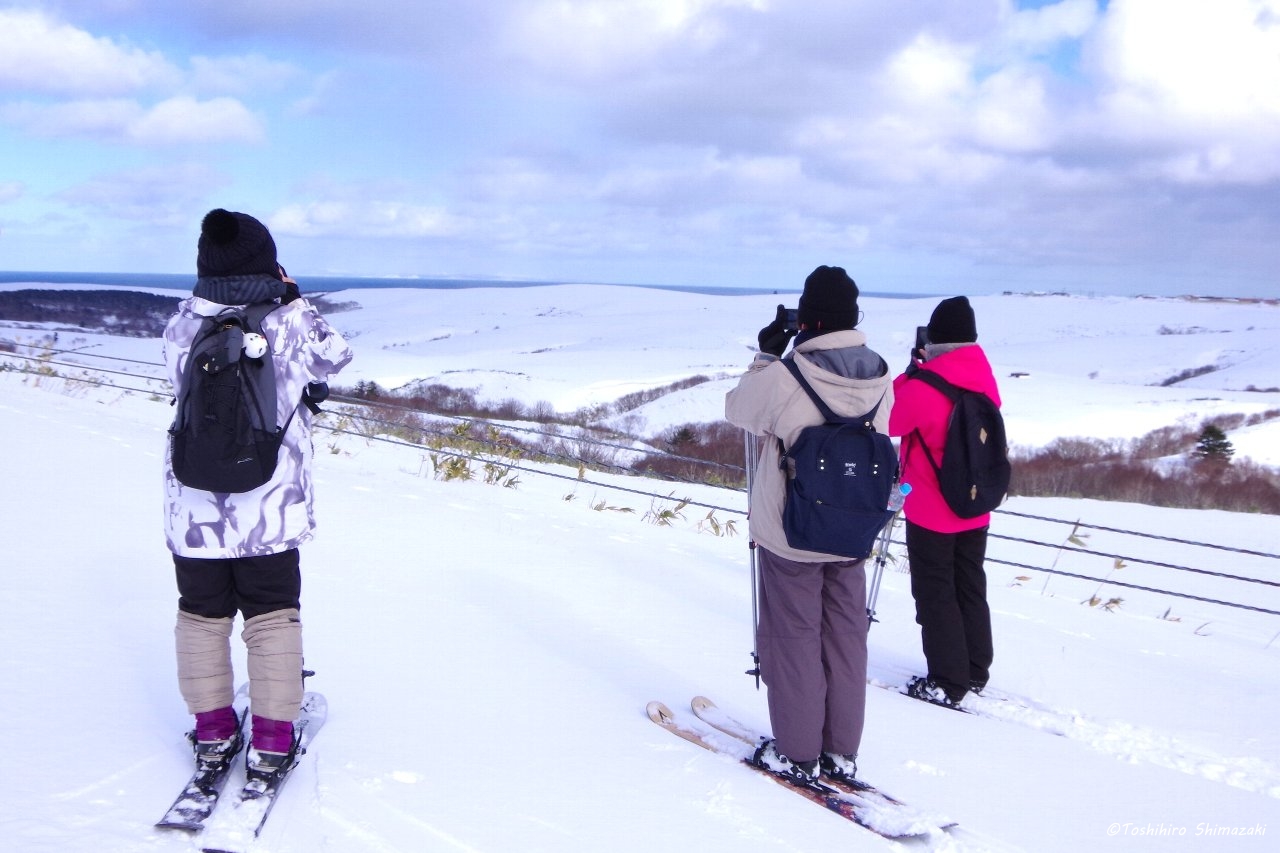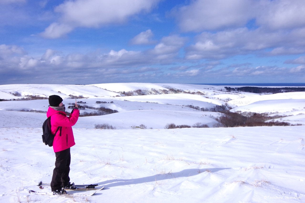 …ということで、今シーズンの冬から宗谷丘陵でスキーシューを使ったガイドツアーを始めており、ありがたいことにお申込みいただきました。※本ツアーでは私有地、道路用地を通行しますので事前に各方面に許可をいただいております。