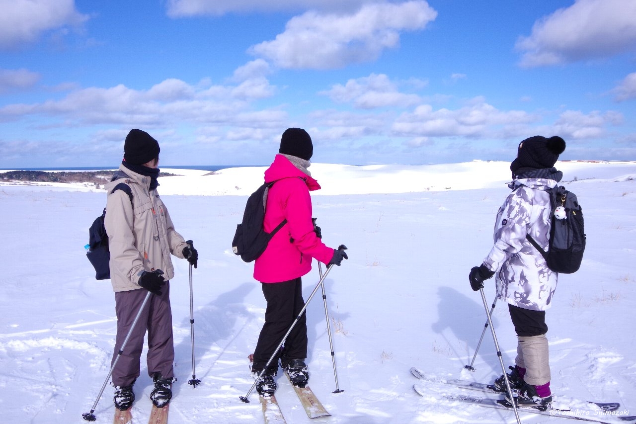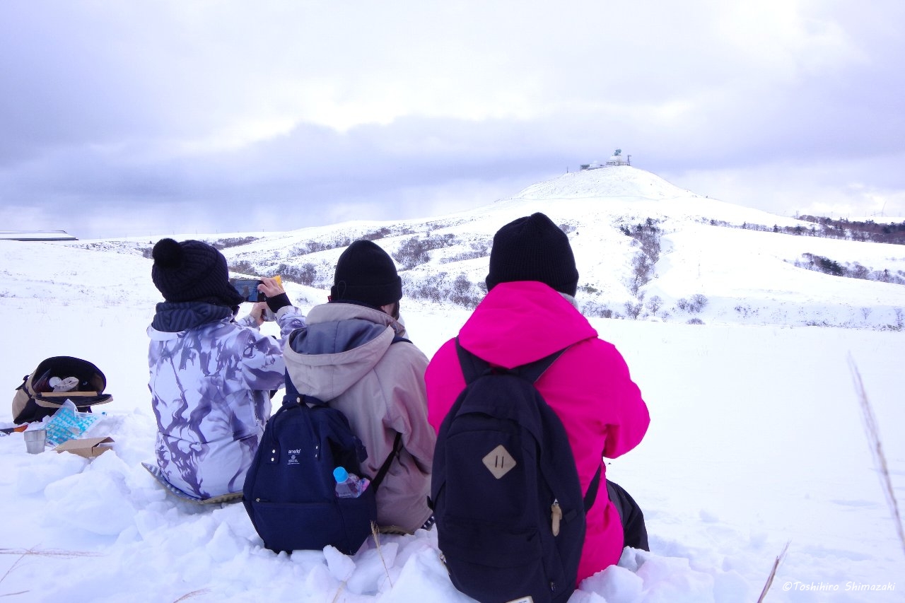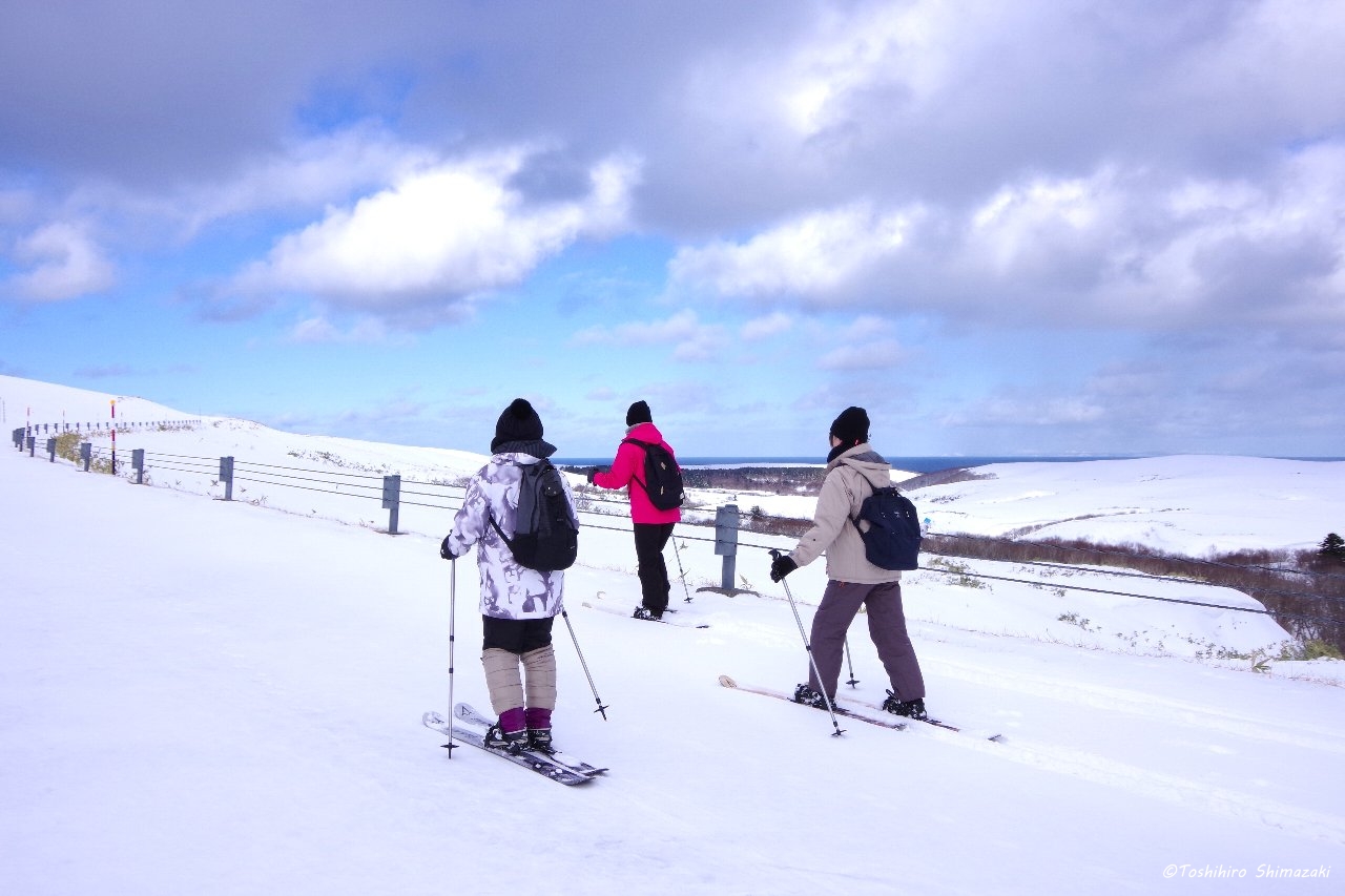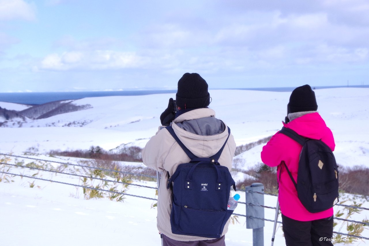 …ということで、今シーズンの冬から宗谷丘陵でスキーシューを使ったガイドツアーを始めており、ありがたいことにお申込みいただきました。※本ツアーでは私有地、道路用地を通行しますので事前に各方面に許可をいただいております。