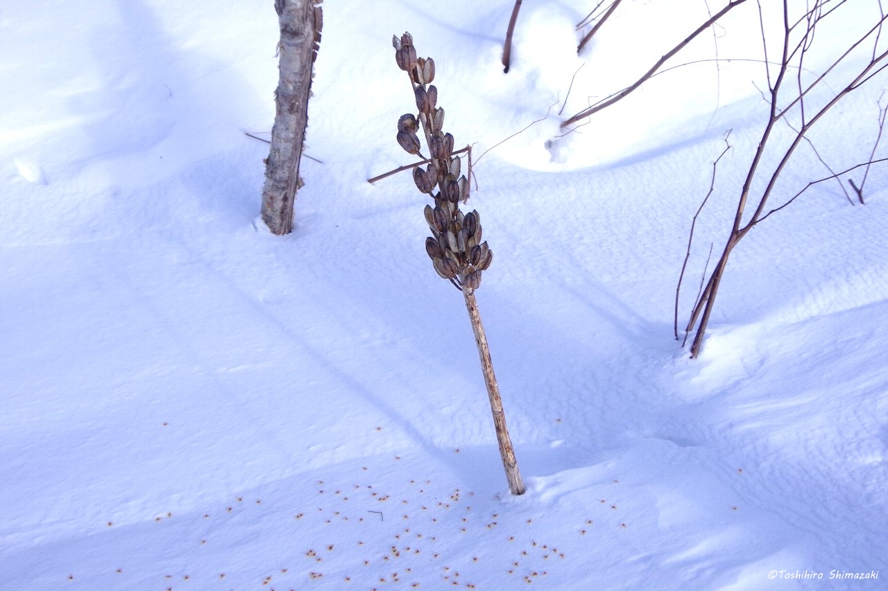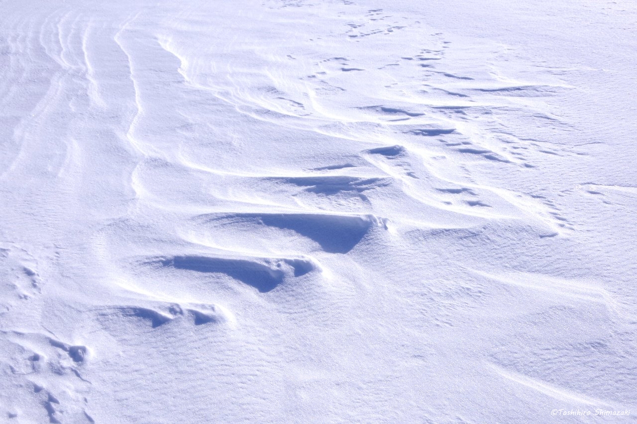 強風の名残が風雪紋として雪原に残されています。