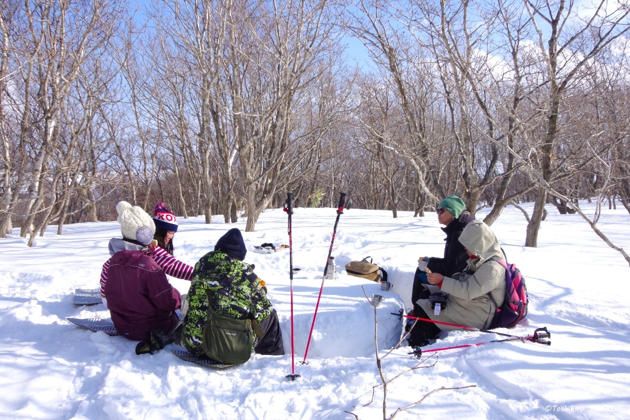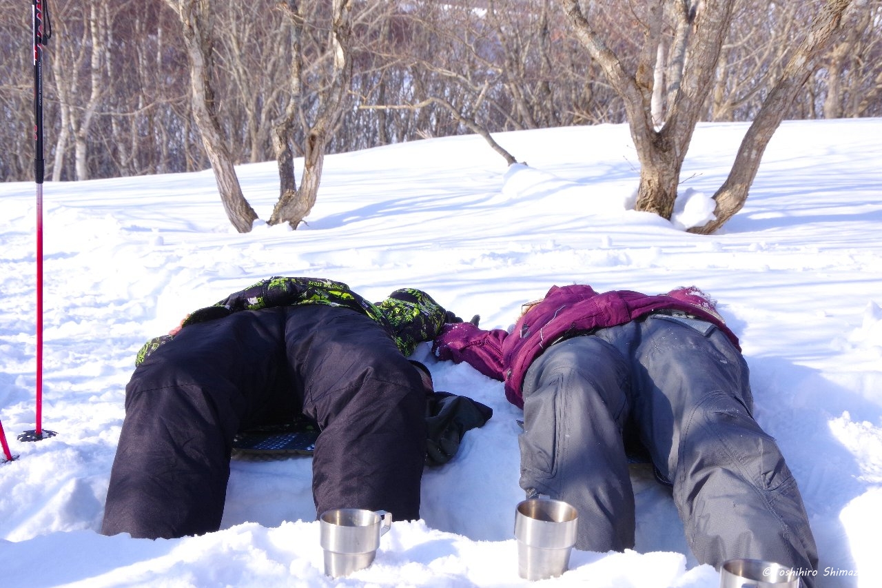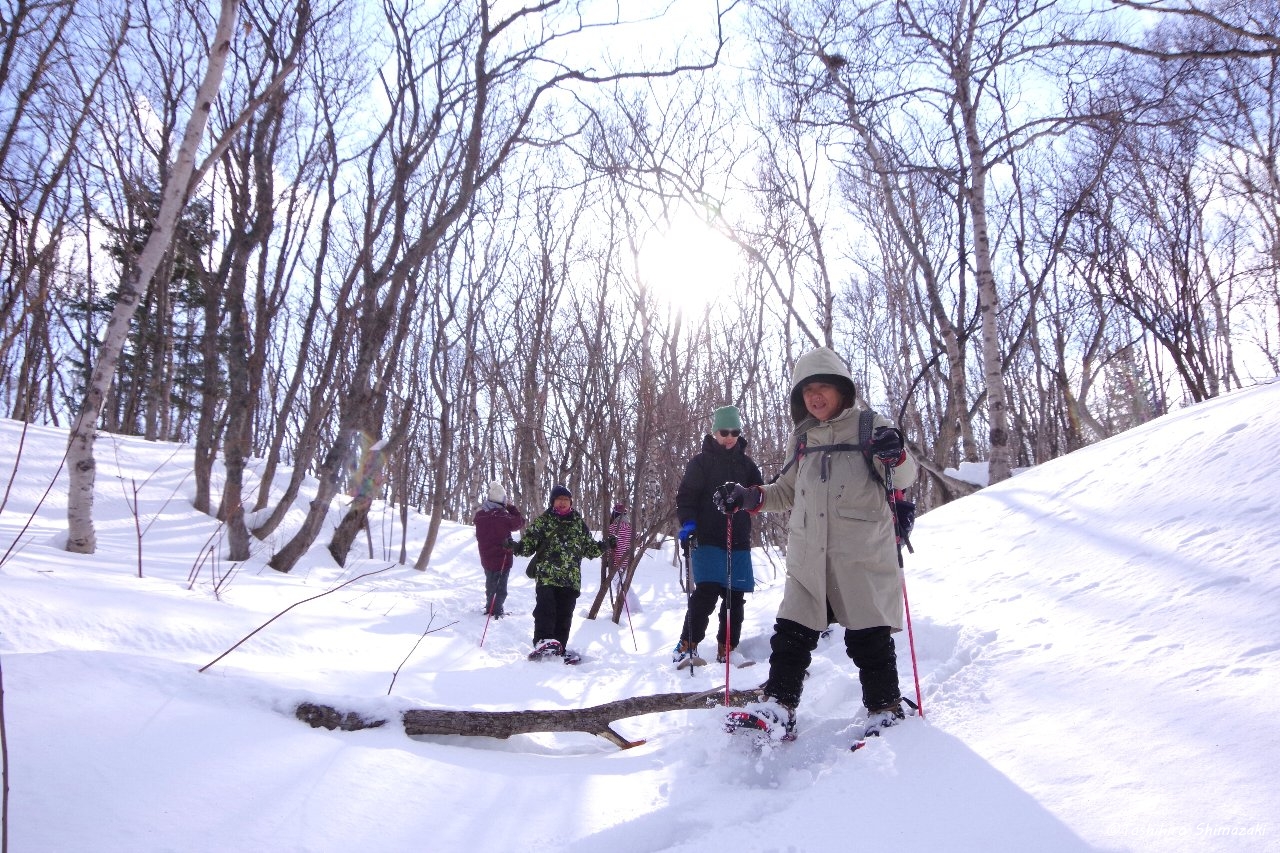 稚内の隣町、豊富町からお越しのご友人同士で、みんなで青空の下、気持ちよく白い森を散策。