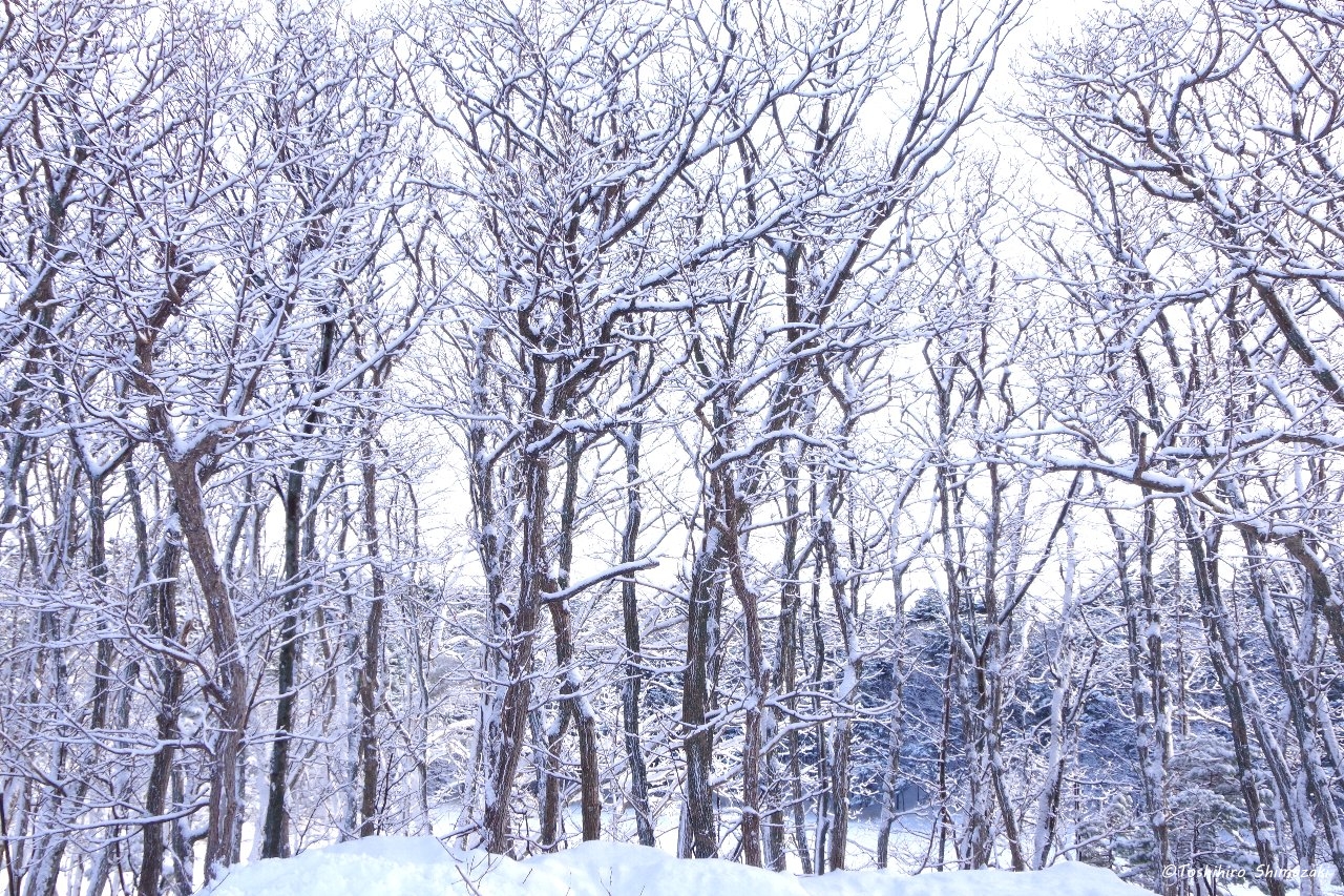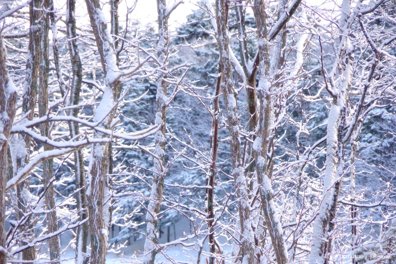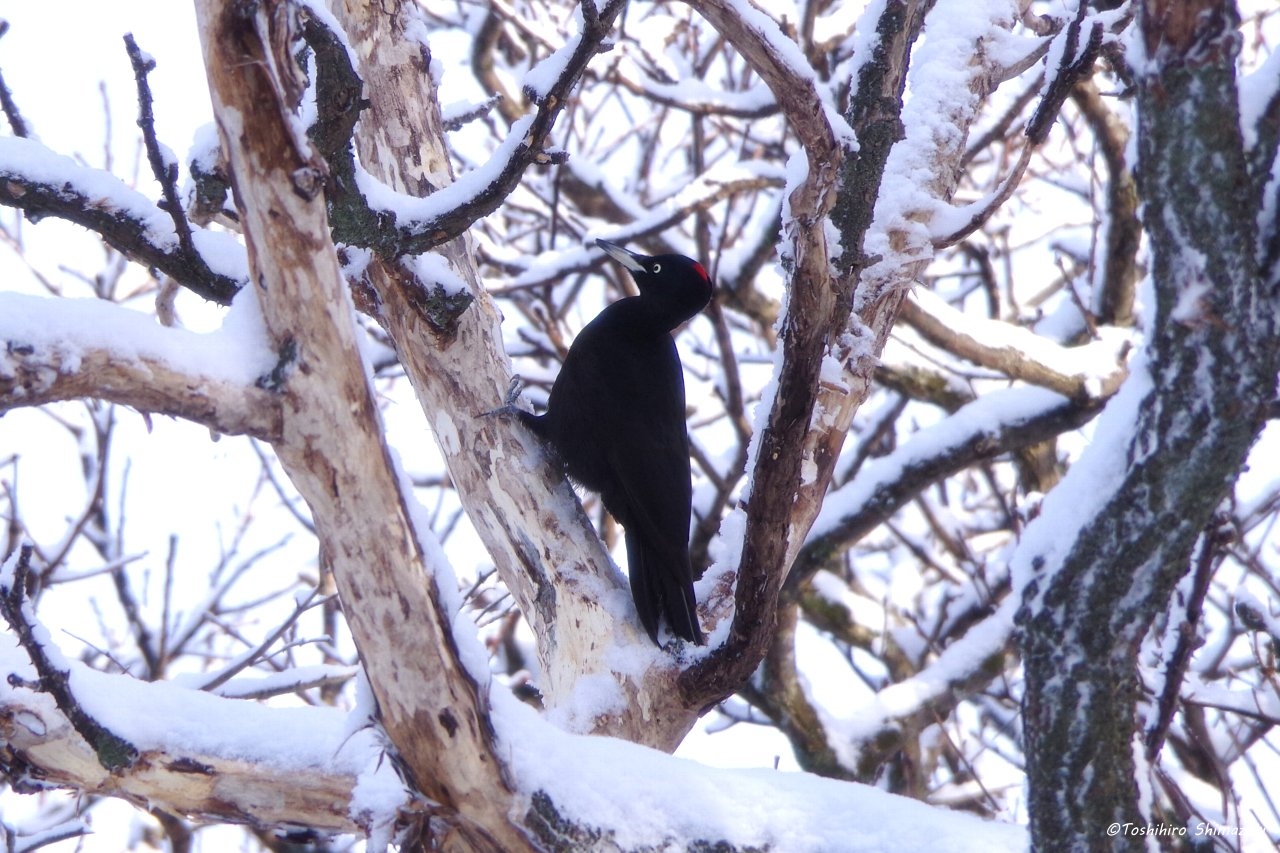 暴風雪が収まった翌朝、仕事に行こうと家を出ると、自宅横の森の奥からクマゲラの甲高い鳴き声が聞こえてきました。