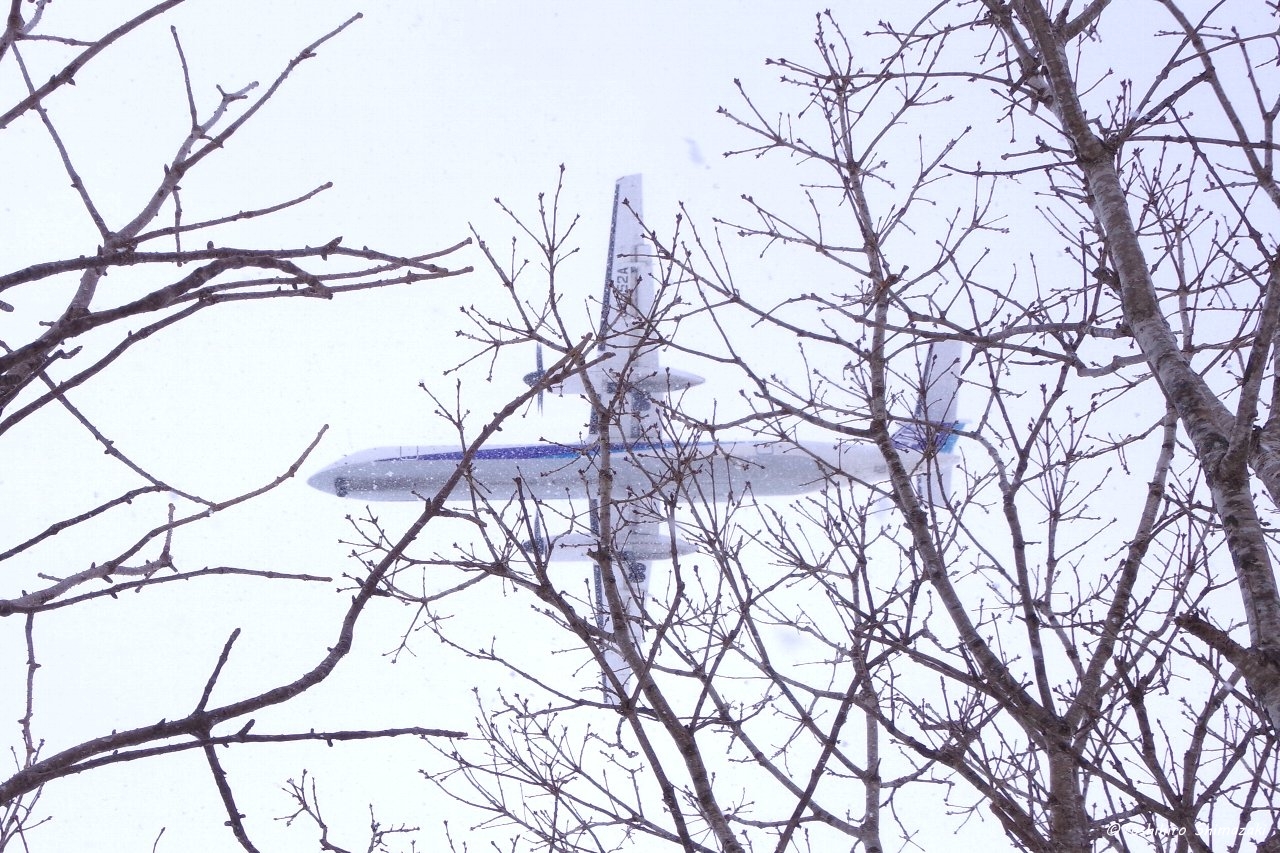 雪のテーブルで休憩中には稚内空港に着陸する飛行機も頭上を通過していき、大迫力でした。