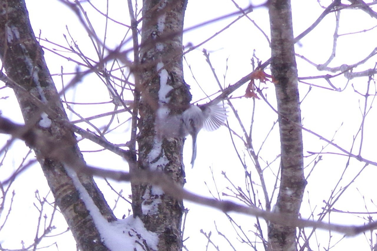 天塩町からお越しのお客様と一緒に森の中へ。するとシマエナガの群れが目の前までやって来てくれました。お客様も初めて見れたと喜んでいただけました。