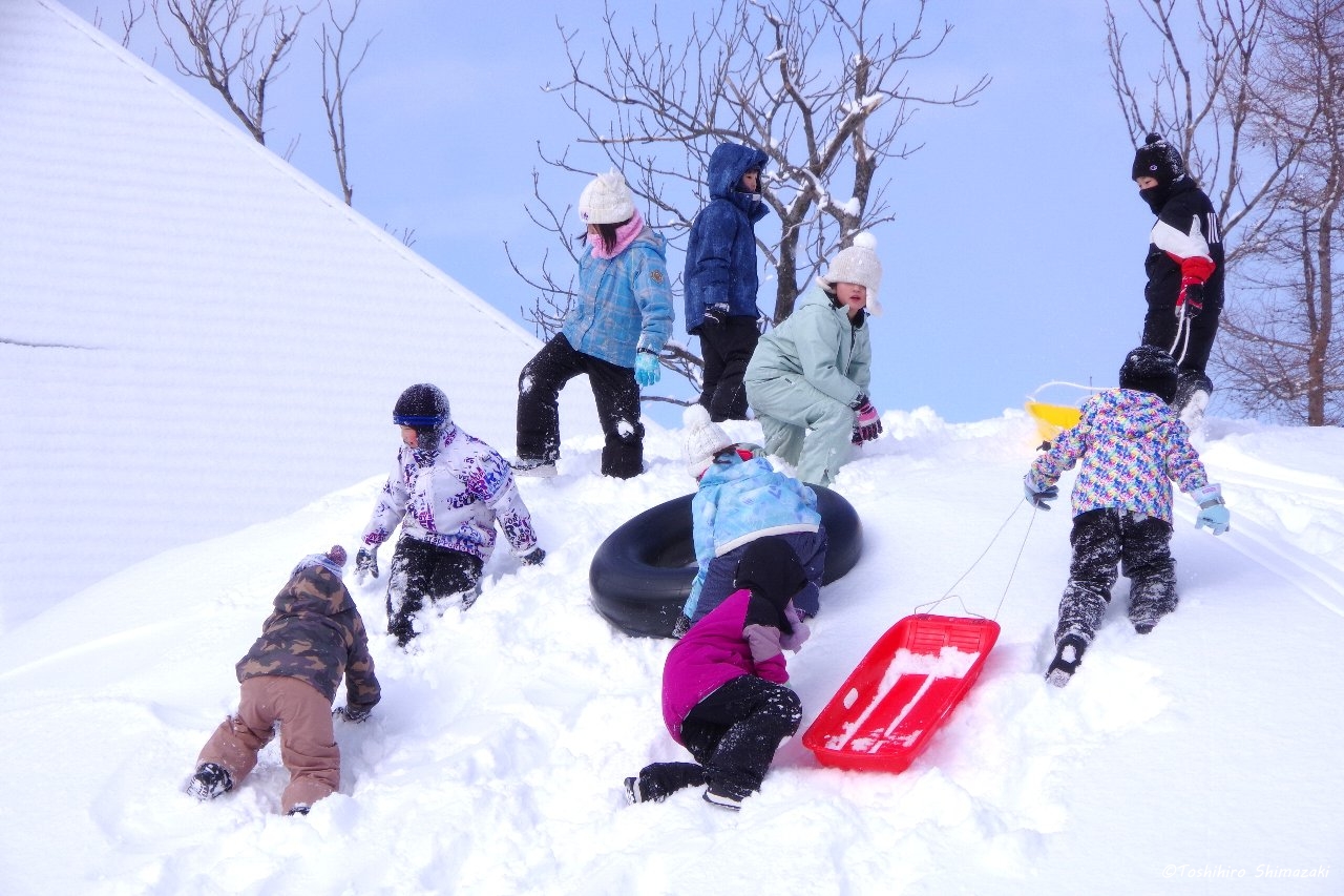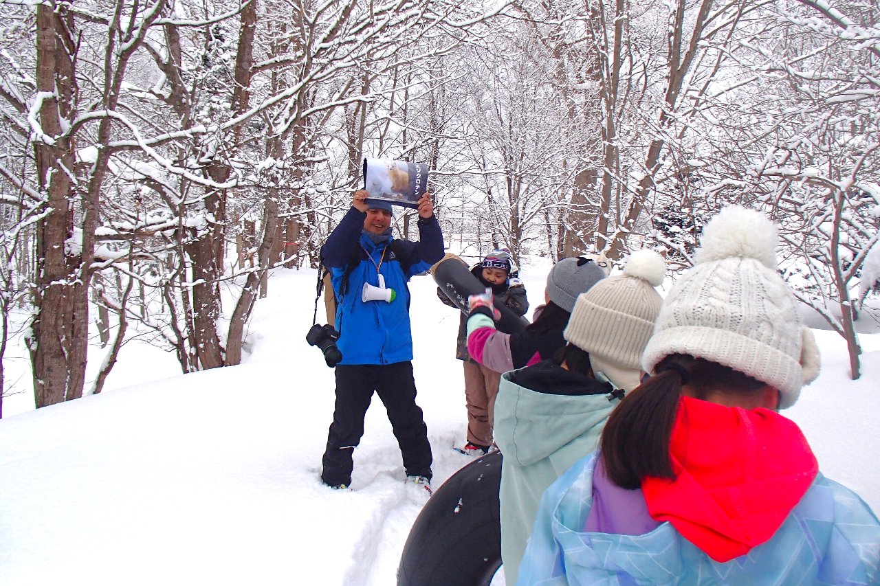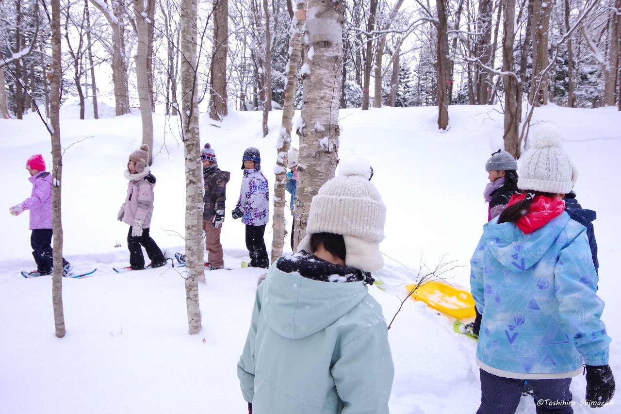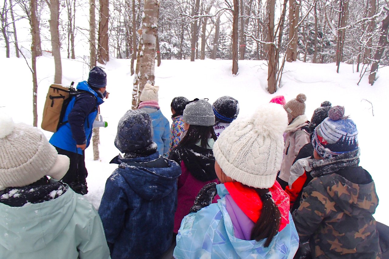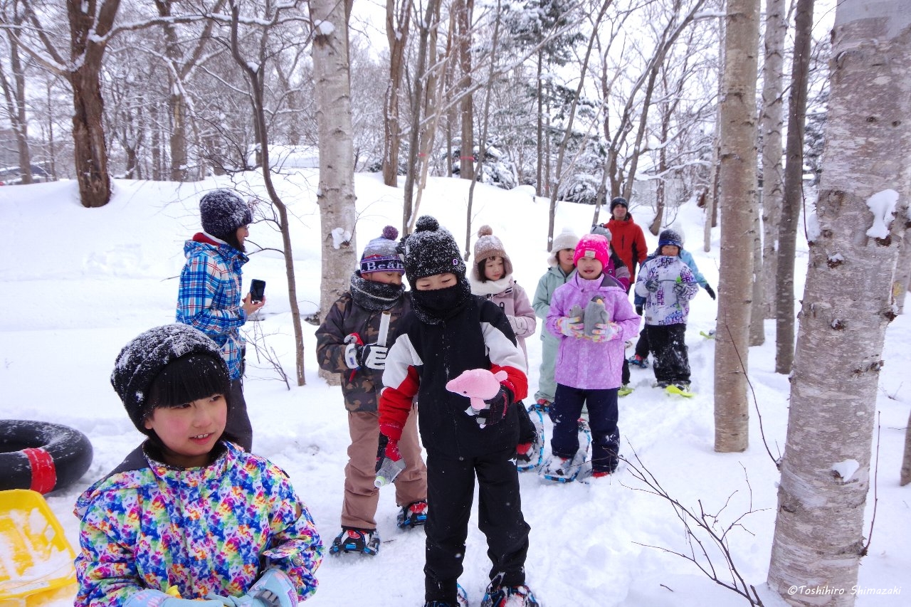 冬の自然を生かしたネイチャーゲームを2つして、冬を生き抜く動物の術などを楽しく体験しました。最後はお楽しみタイム。公園の雪山で思いっきりソリやチューブで遊びました。元気いっぱいの子どもたち。きっとお昼の給食が美味しかったと思います。