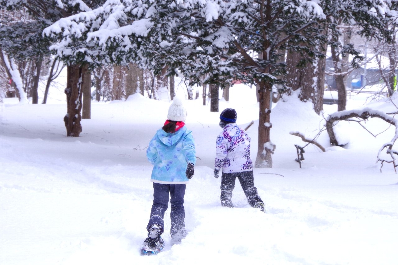 みんな初めてのスノーシューを履いて、ワクワクしながら名林公園を探検しました。キタキツネ、エゾユキウサギ、エゾクロテンの足跡を観察したり、木の芽などを観察したりしながら他の季節のことを思い出しながら森の奥へと進みます。