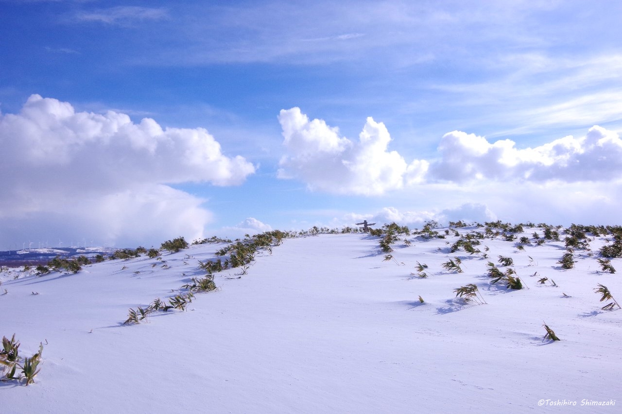お客様とふれあい公園のスタッフさんも一緒に丘の上まで歩いて行くと、白い丘と青い空がとても綺麗でした。