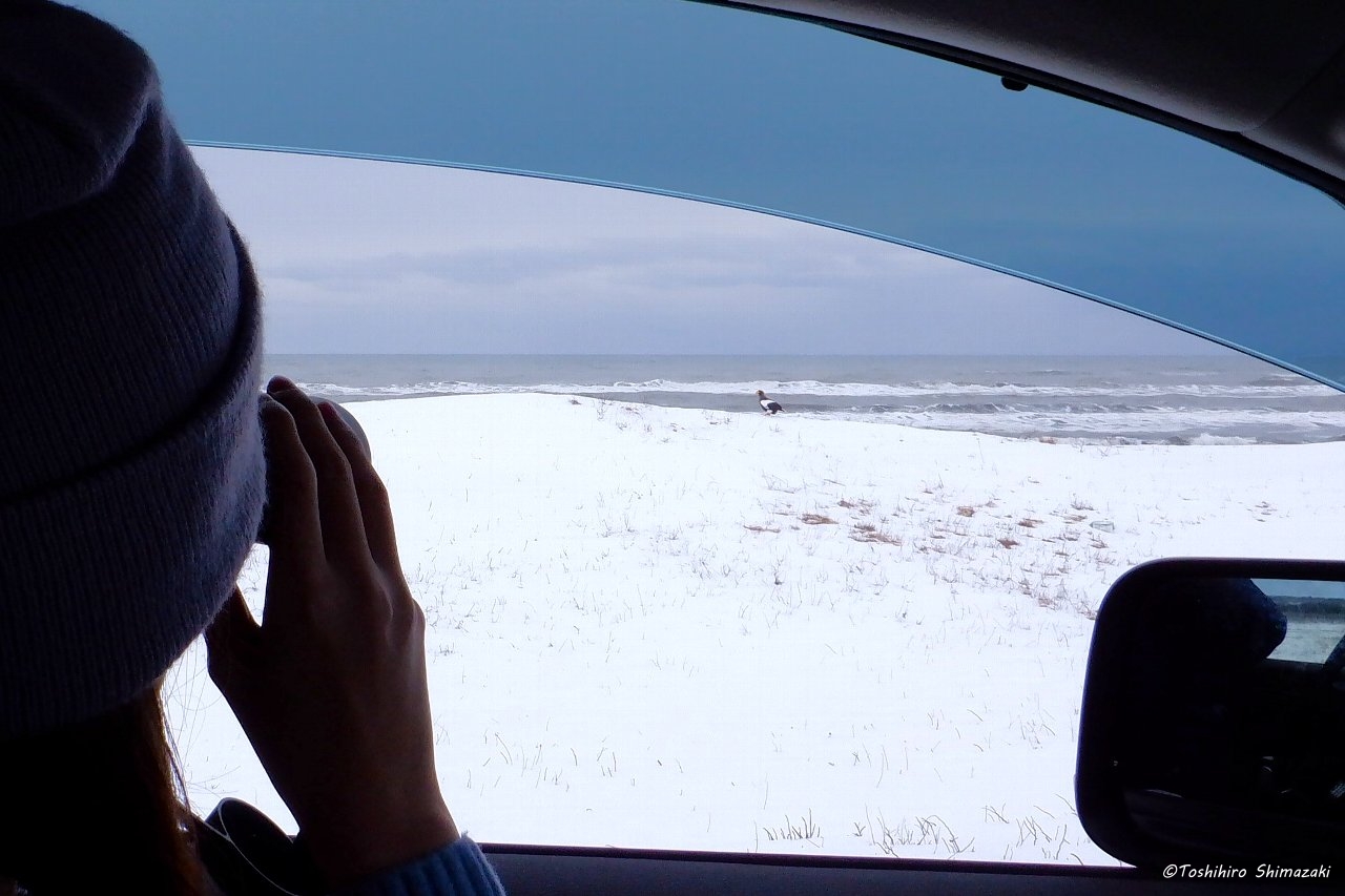 この日は海岸線にワシが集結している日で、オジロワシとオオワシを合わせて15羽ほどを見ることができました。