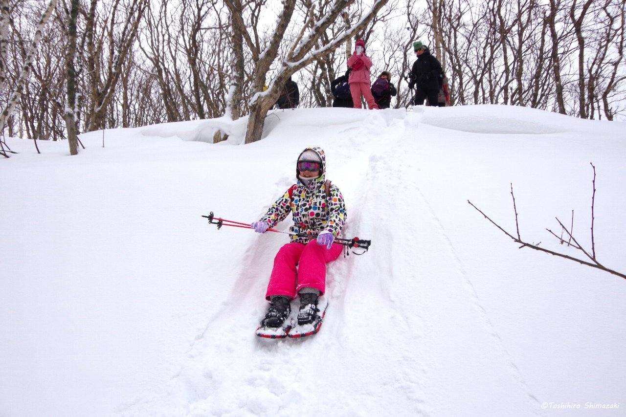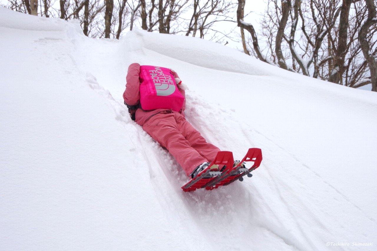 最後は雪の斜面を童心に戻って滑って帰って来ました。冬の稚内をスノーシューで満喫した日でした。