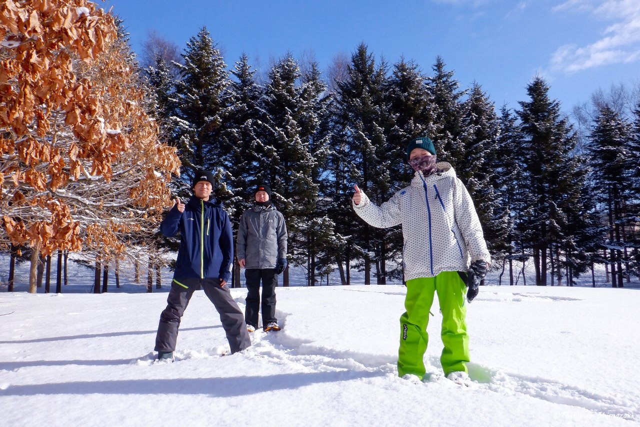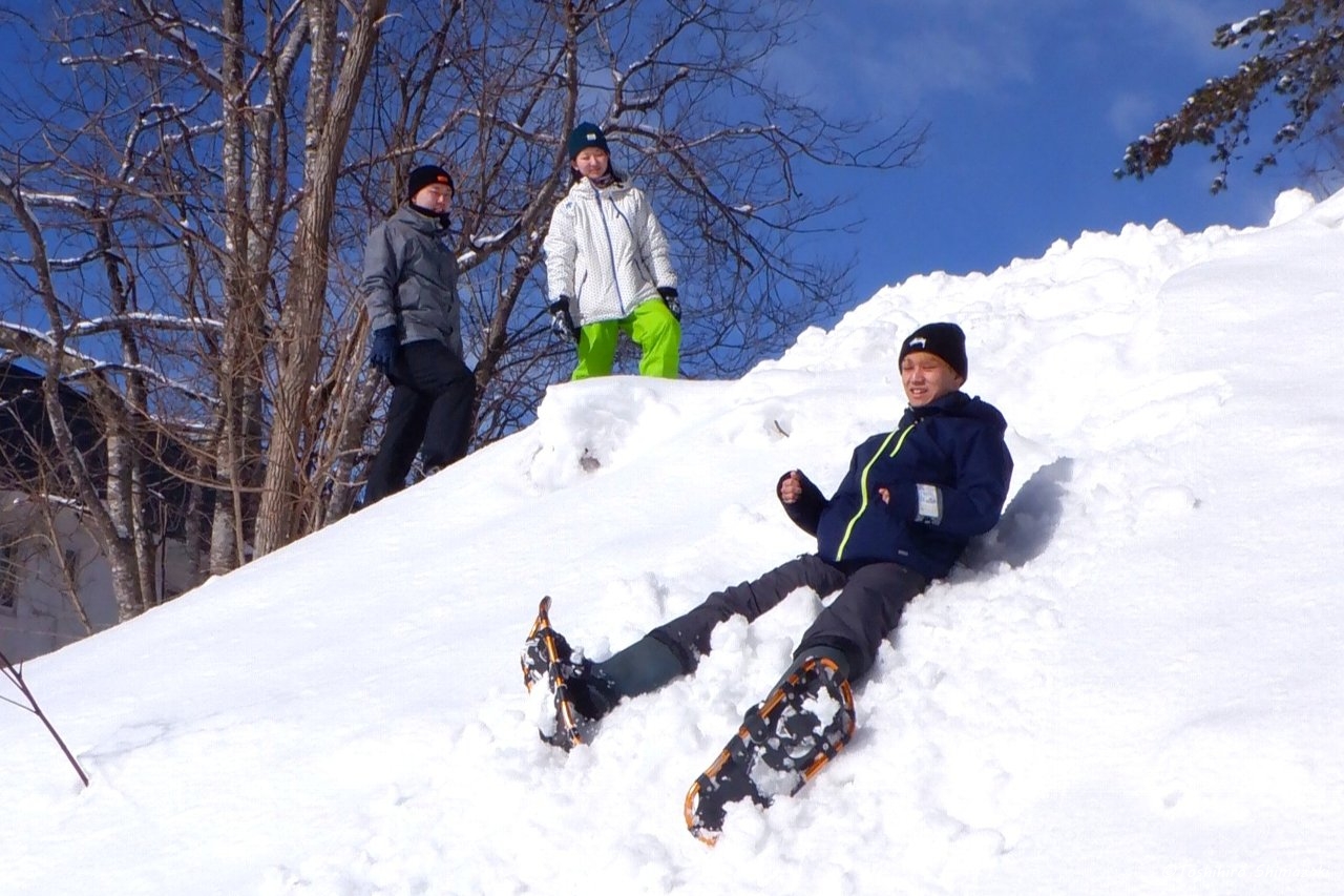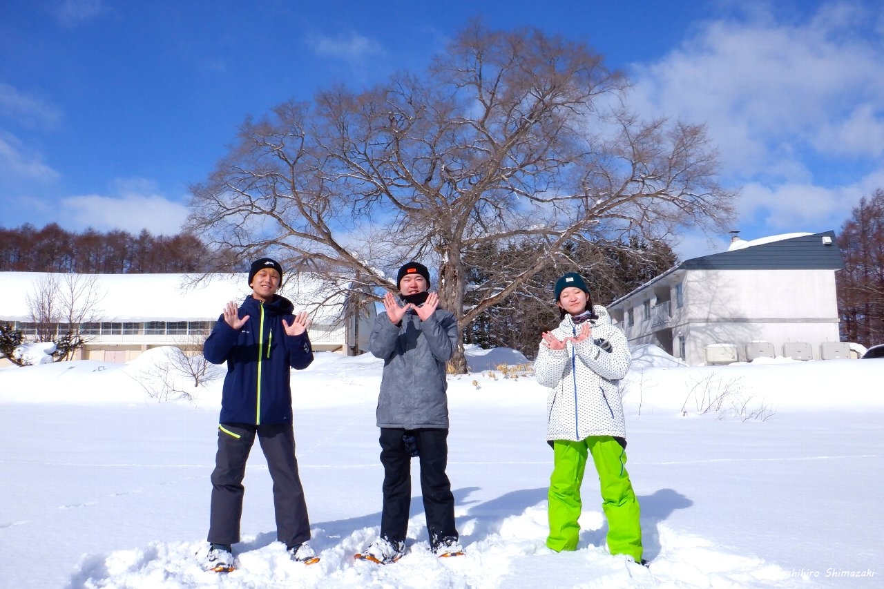 インターンシップ活動の報告会に札幌から来てくれた北海学園大の大学生3名と、報告会の翌日に一緒に豊富温泉をスノーシューで散策してきました。