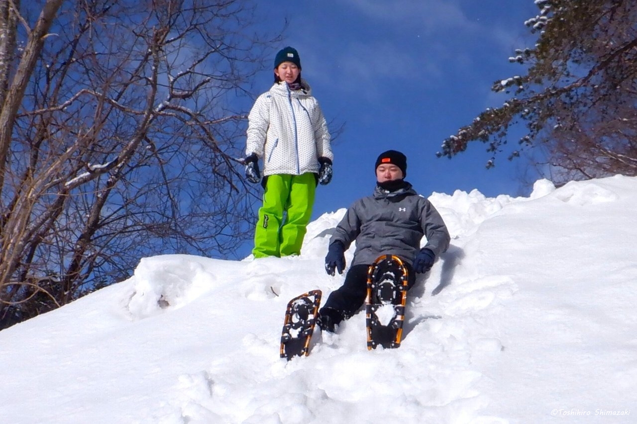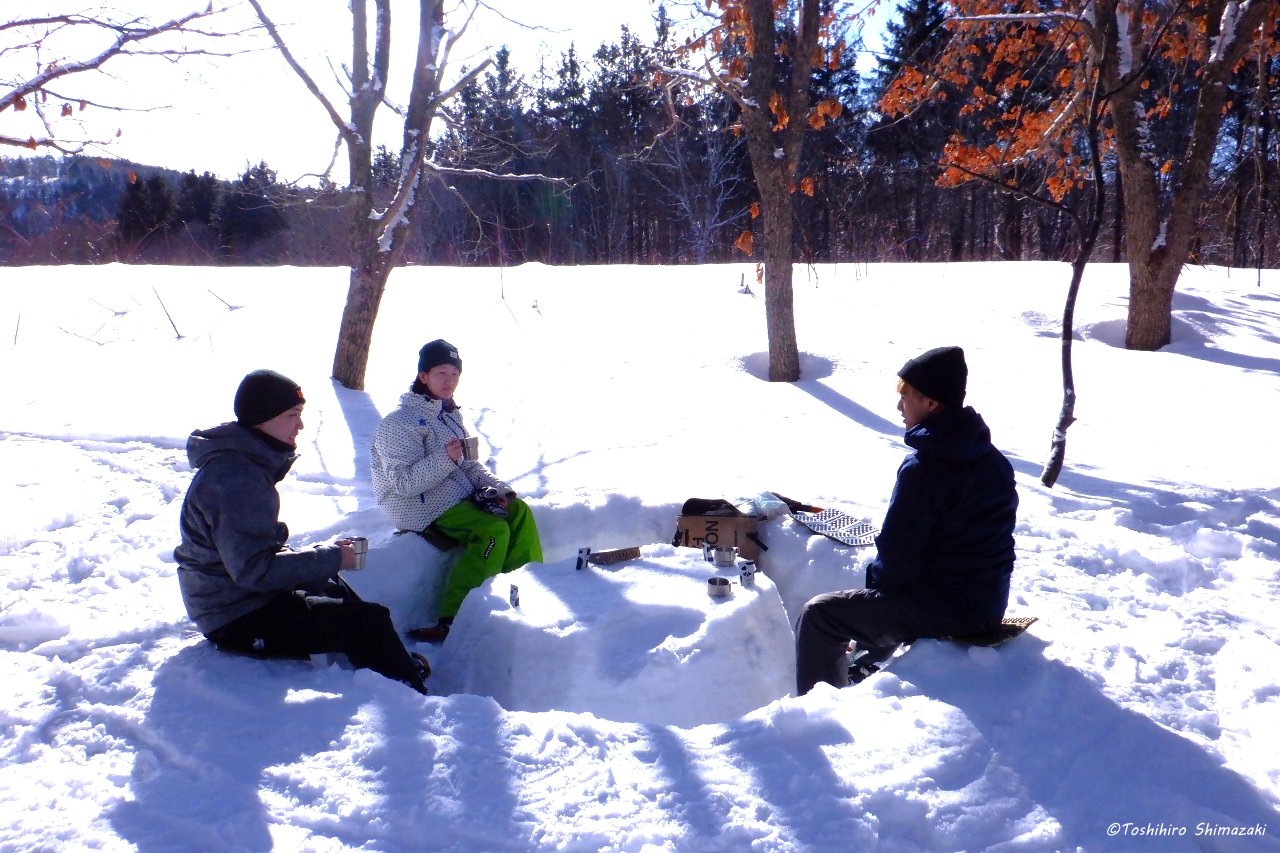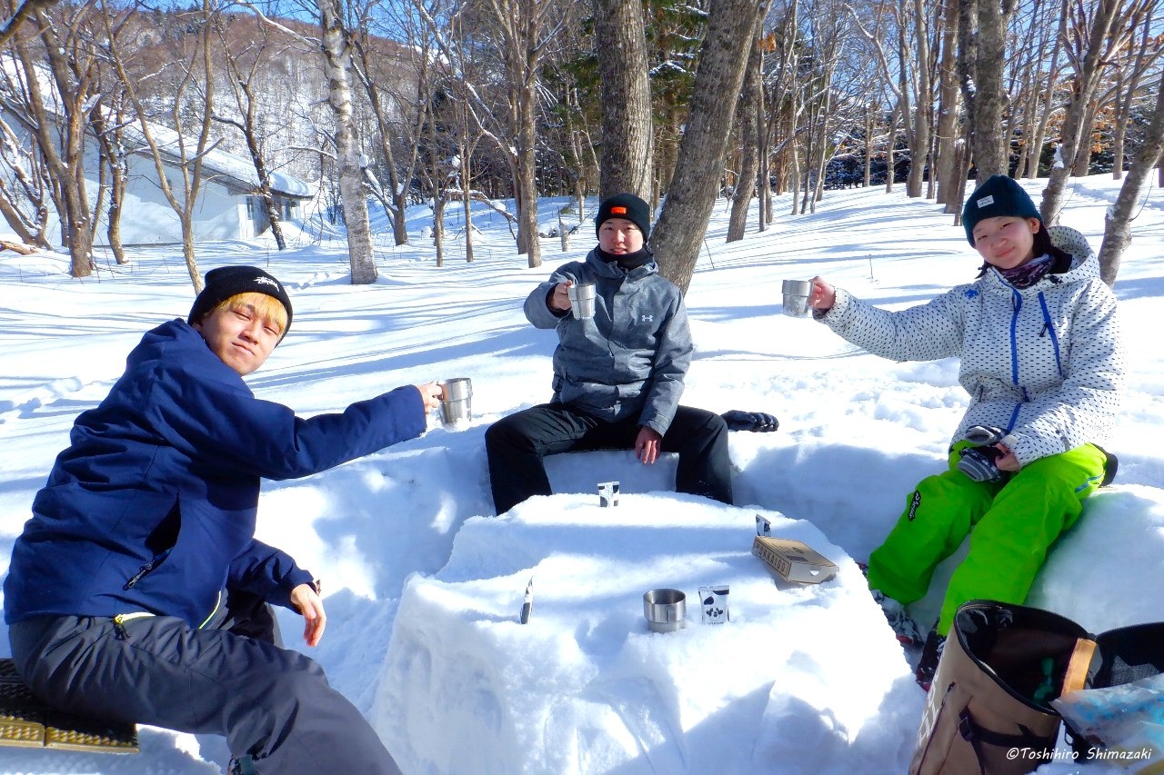 インターンシップ活動の報告会に札幌から来てくれた北海学園大の大学生3名と、報告会の翌日に一緒に豊富温泉をスノーシューで散策してきました。