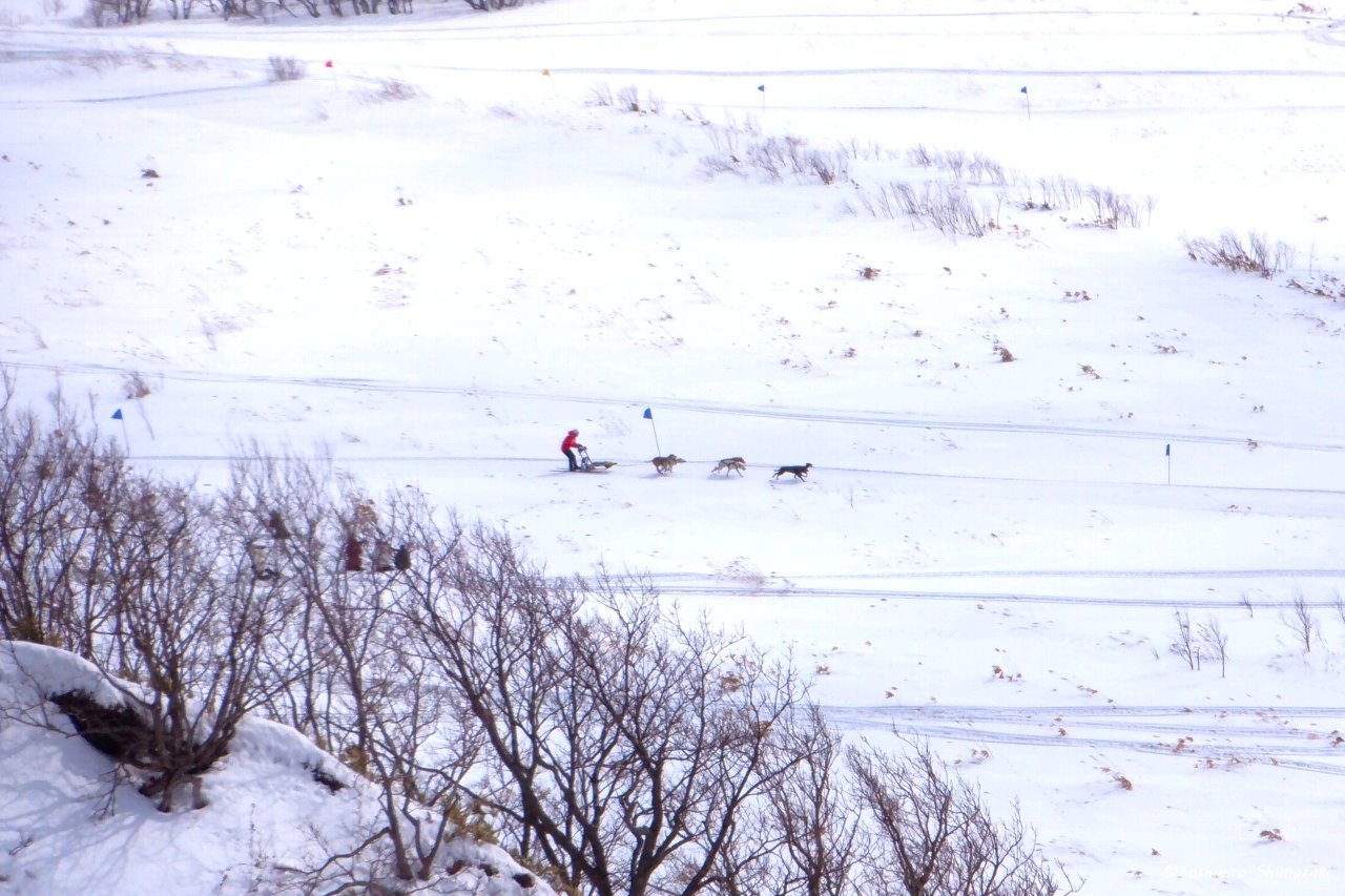 お天気も良く、眼下を走る犬たちとマッシャーの方に声援を送りました(聞こえていたかな?)。