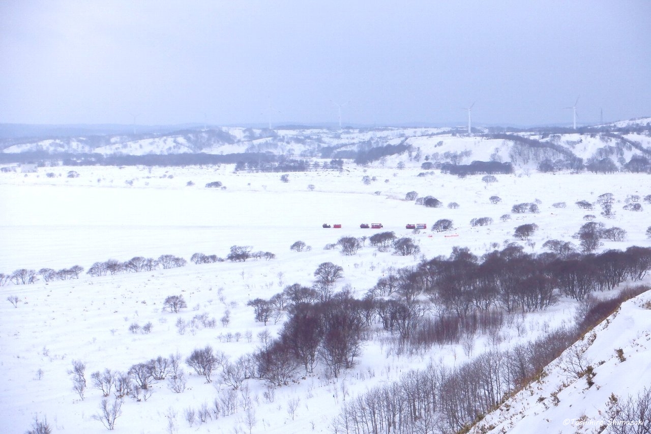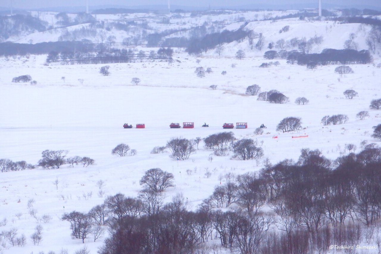 犬ぞりも遠くに見えて、大賑わいの遊覧雪上車も見えました。