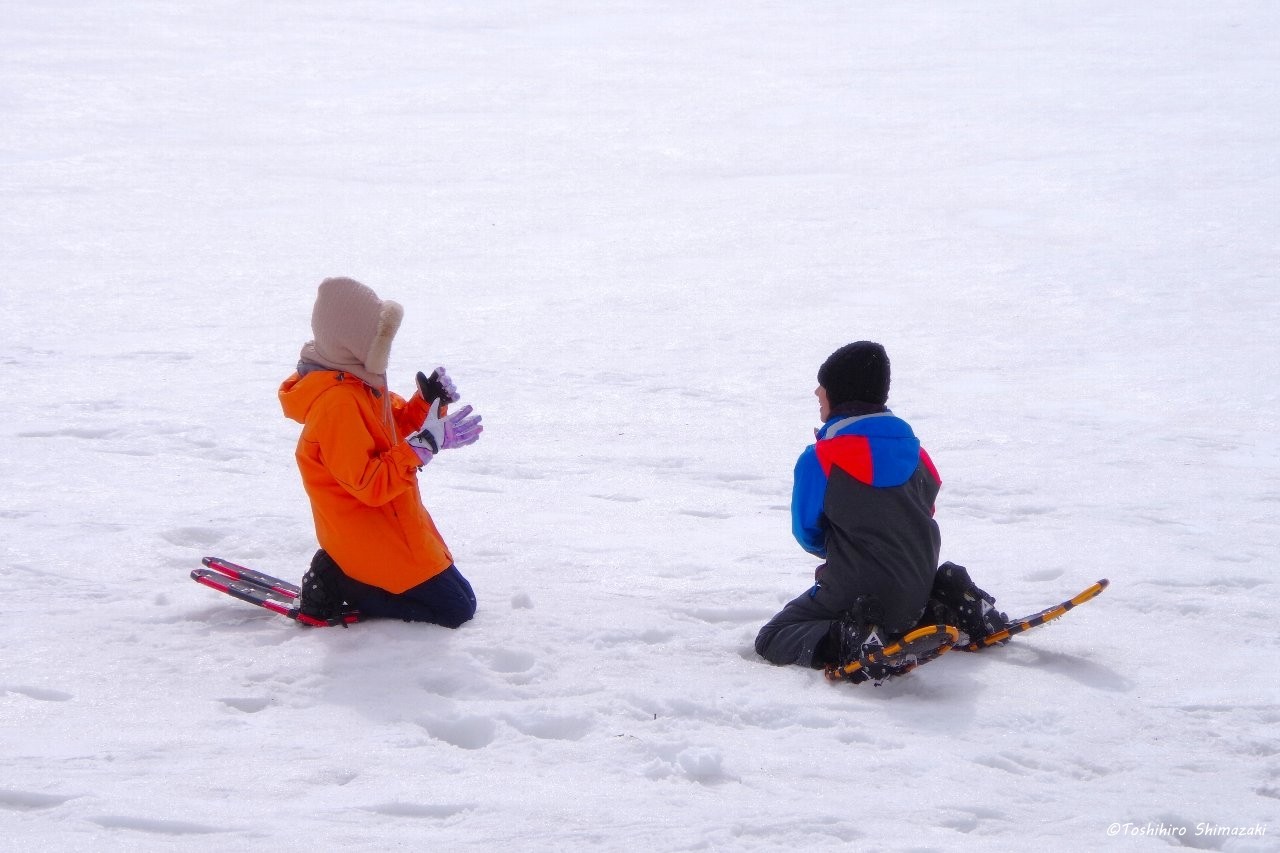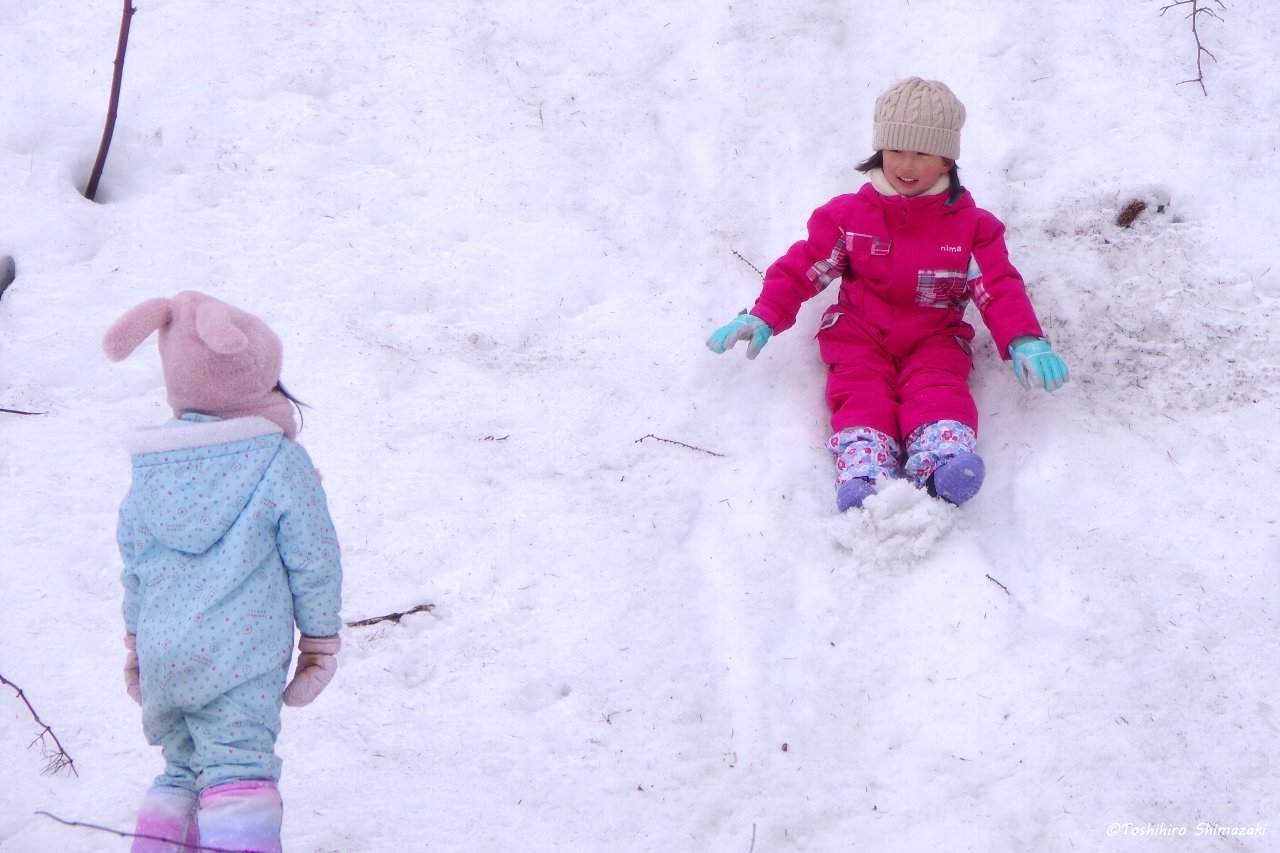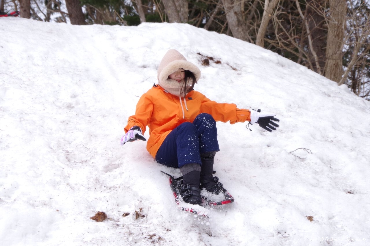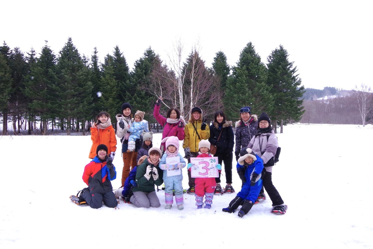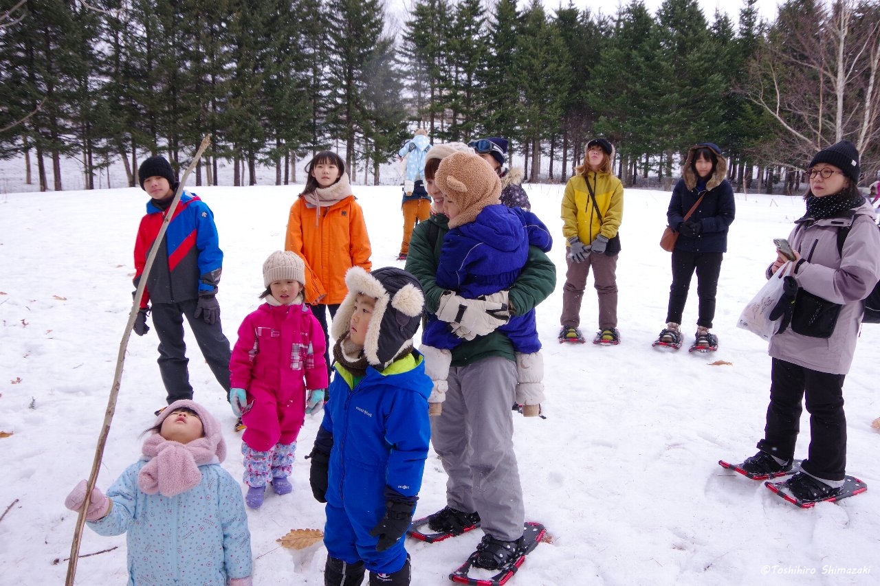 後半はずっと昔から豊富温泉と人々を見守ってきた推定樹齢300年以上のハルニレの木にご挨拶して、雪の滑り台を楽しみ、おやつ争奪スノーフラッグで盛り上がりました。