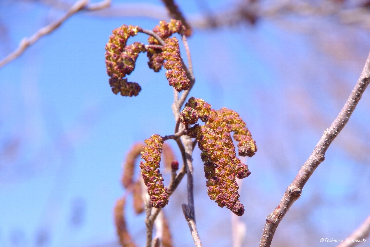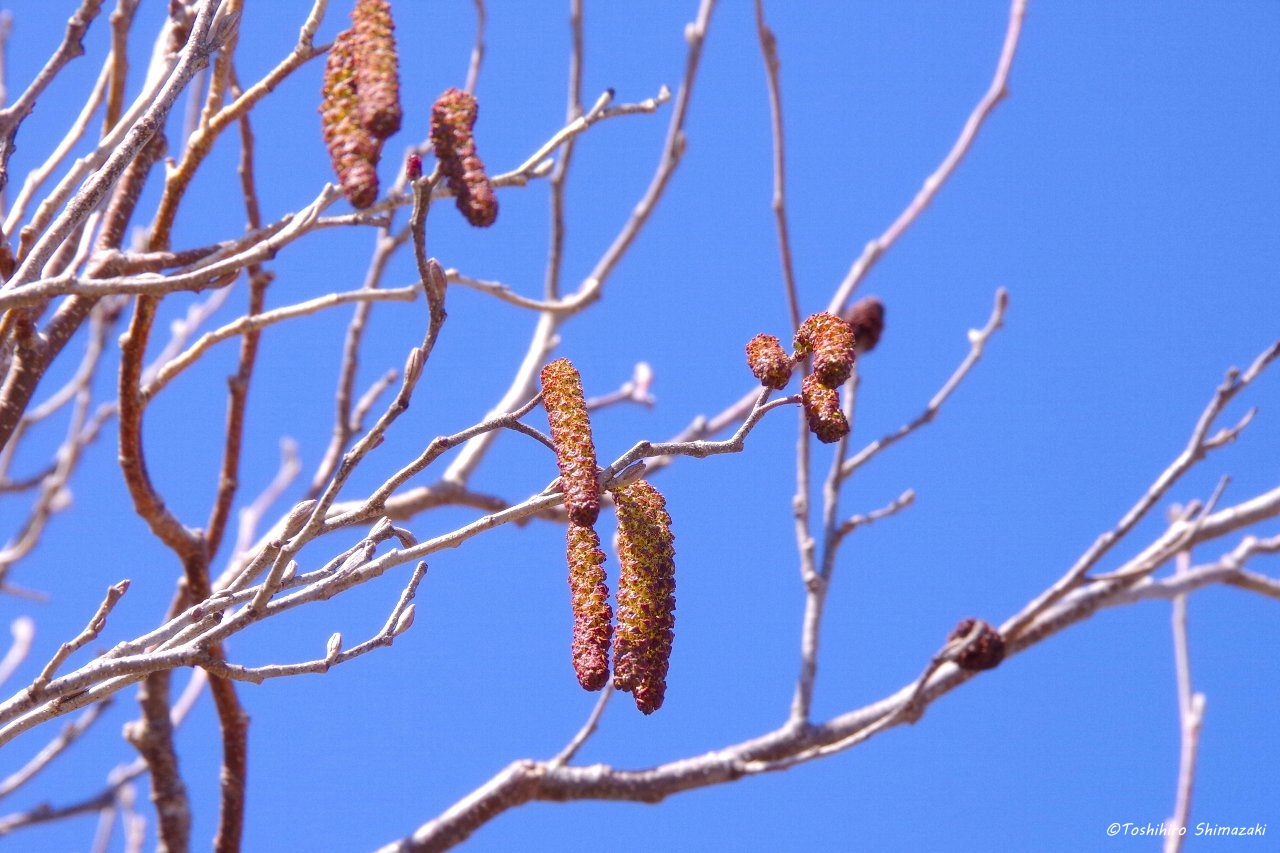 水辺ではミズバショウの芽が顔を出し、ハンノキの花は地味に満開になっています。