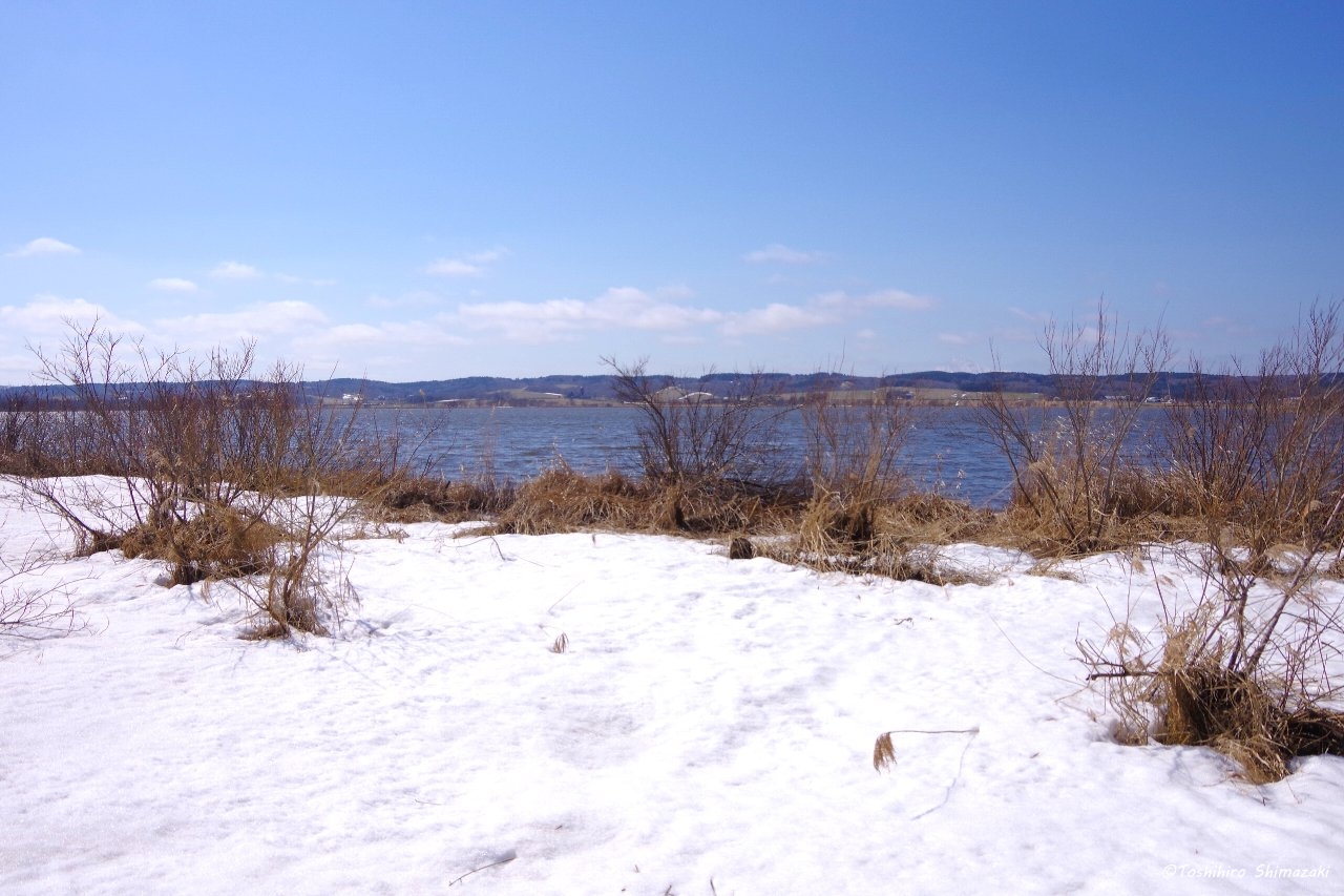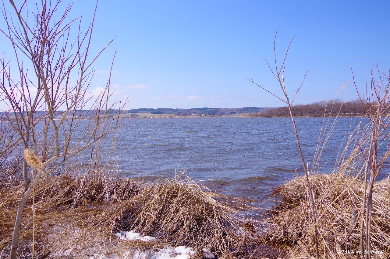 兜沼のほとりまで行ってみると、沼一面にあった氷はすっかりとけて、湖畔ギリギリまで冷たい水で満たされていました。