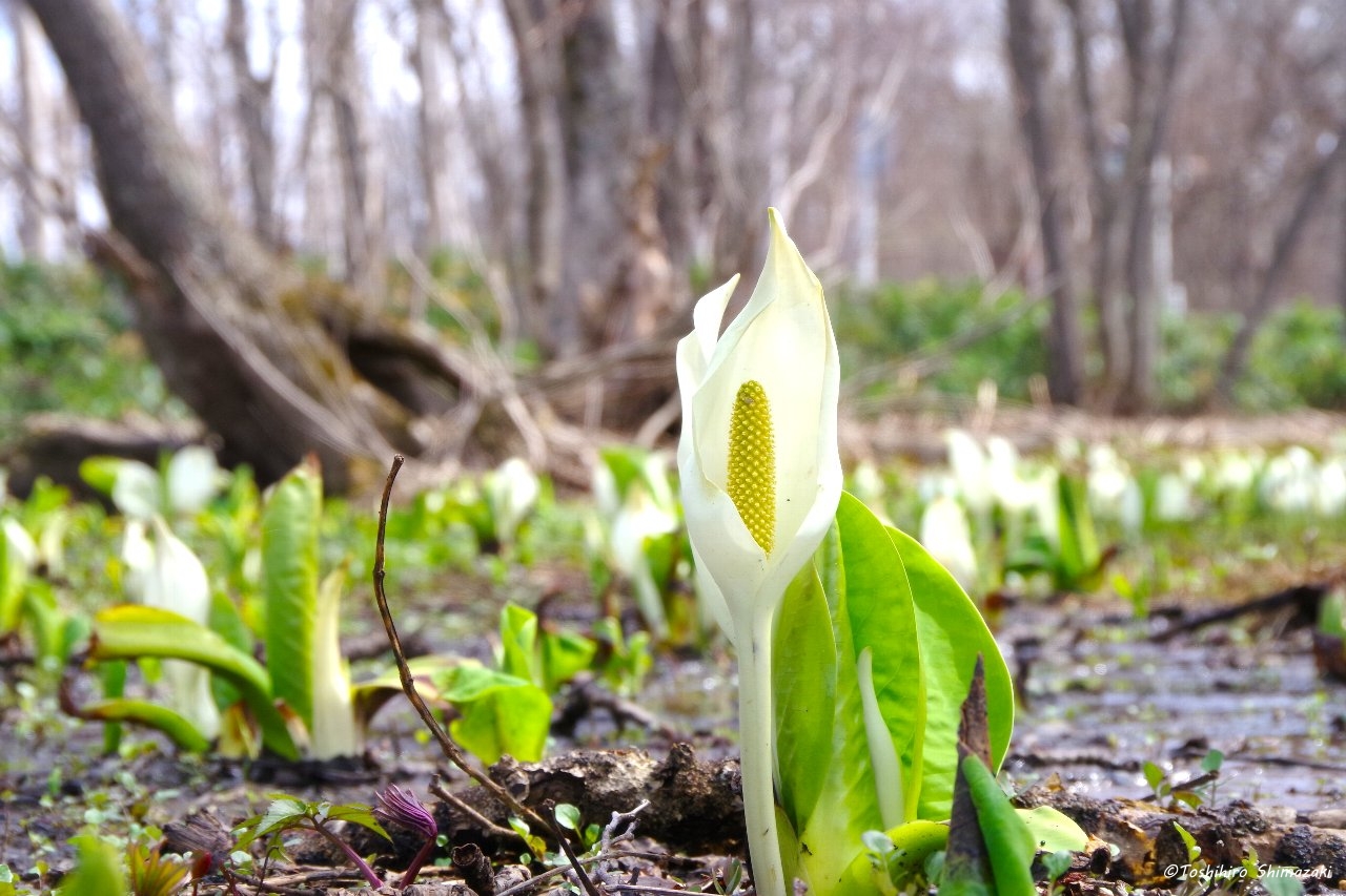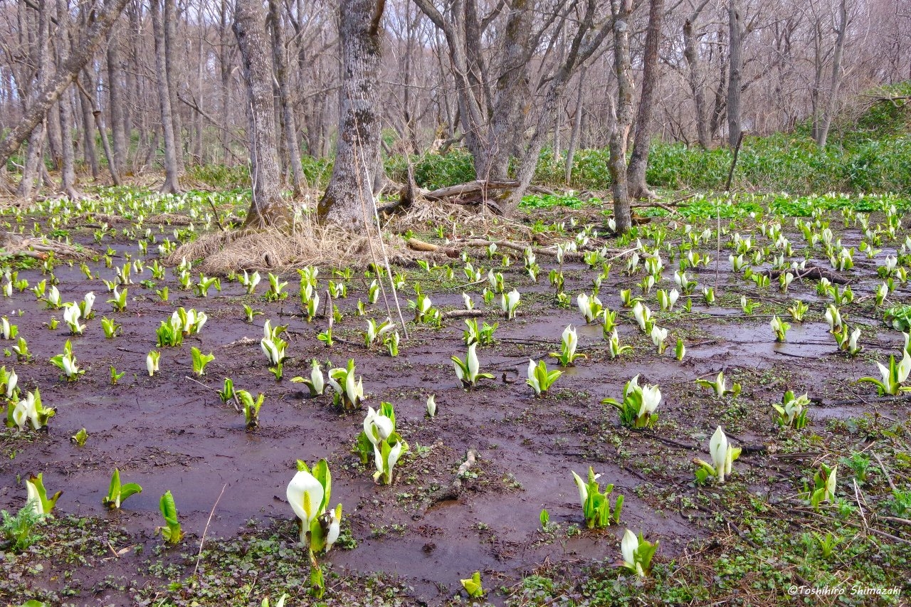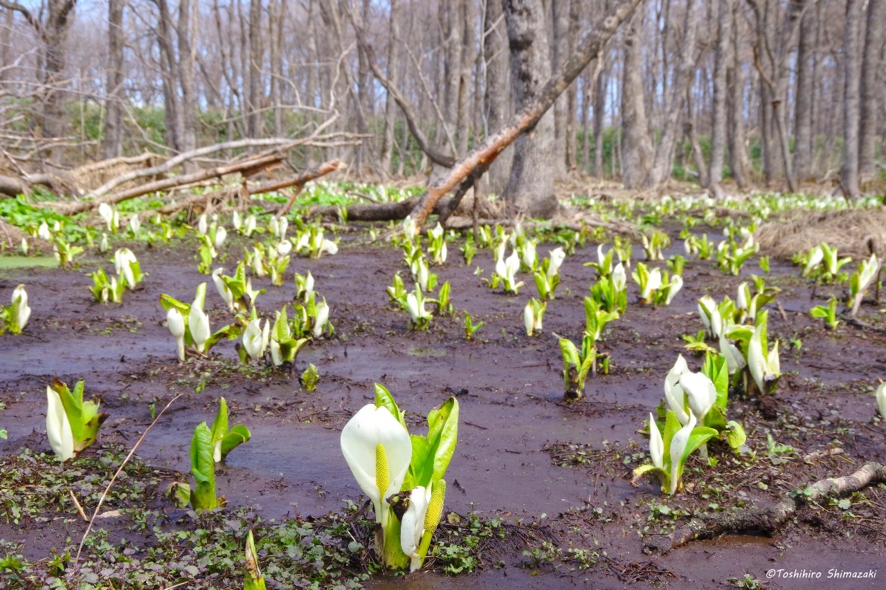 現地では思った以上にたくさん咲いてきており、辺り一面はミズバショウの少し甘い独特の香りに包まれていました。