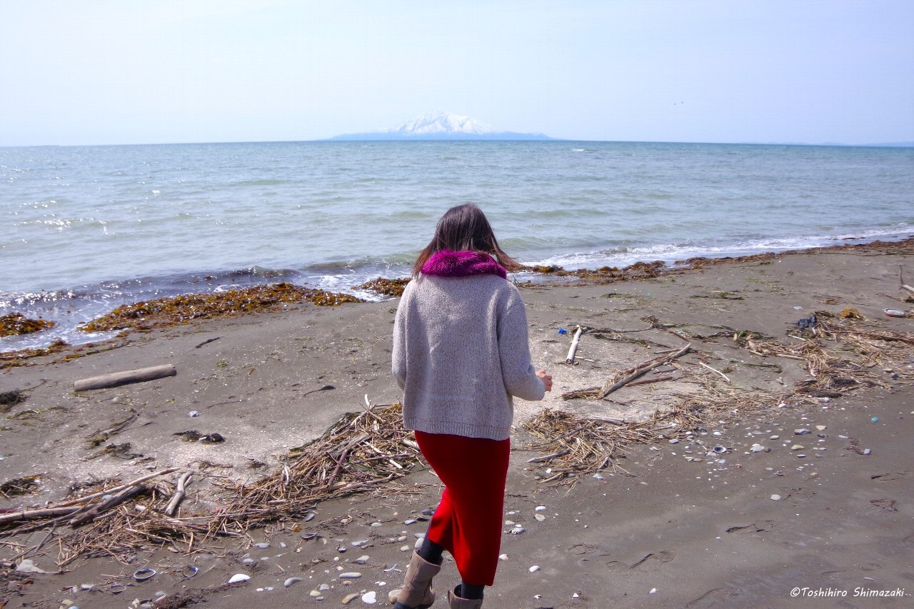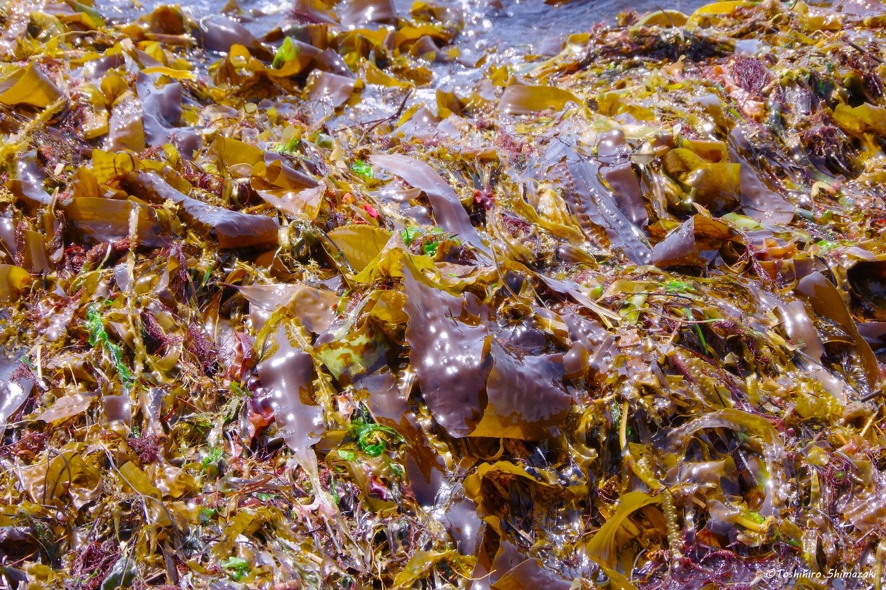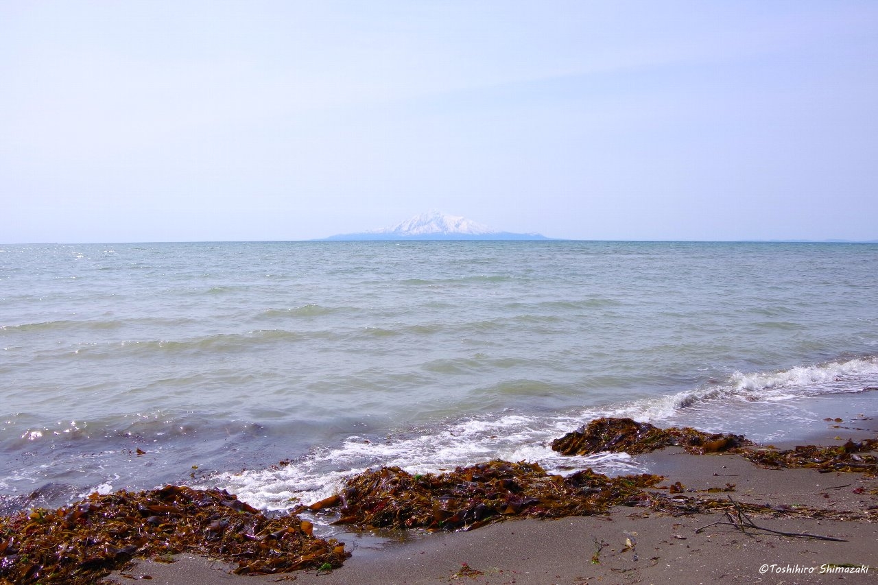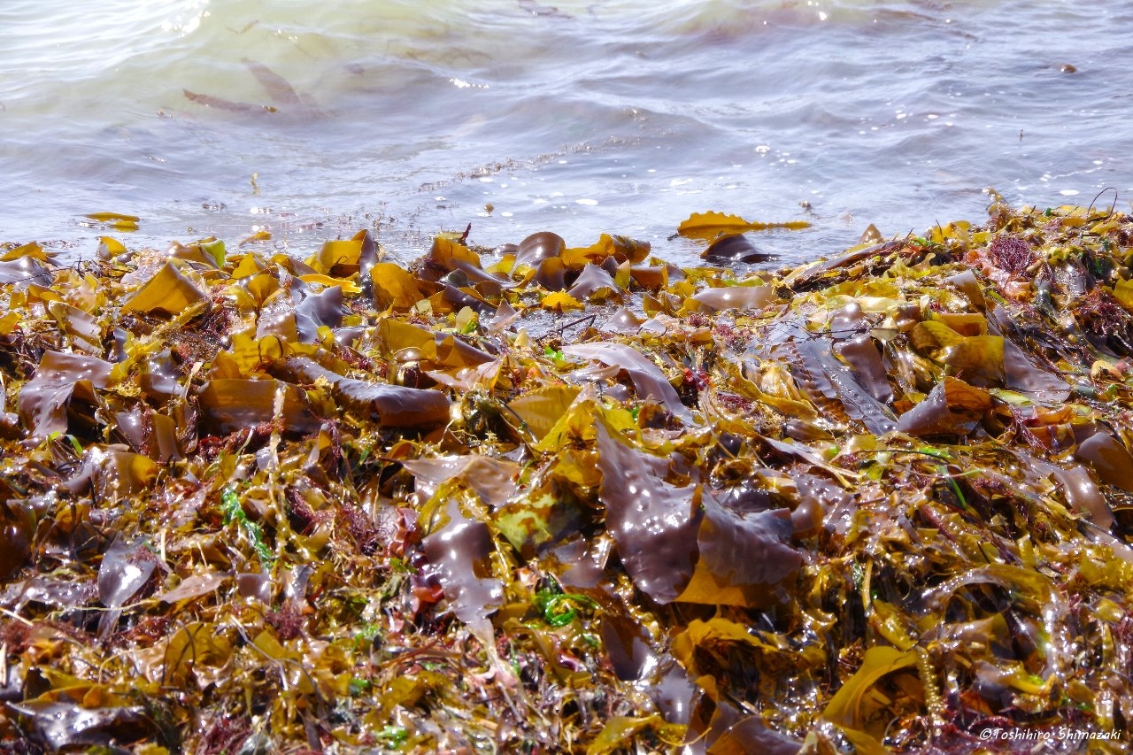 途中、海に立ち寄り波打ち際を歩くと、砂浜にはたくさんの利尻昆布が打ち上げられていました。