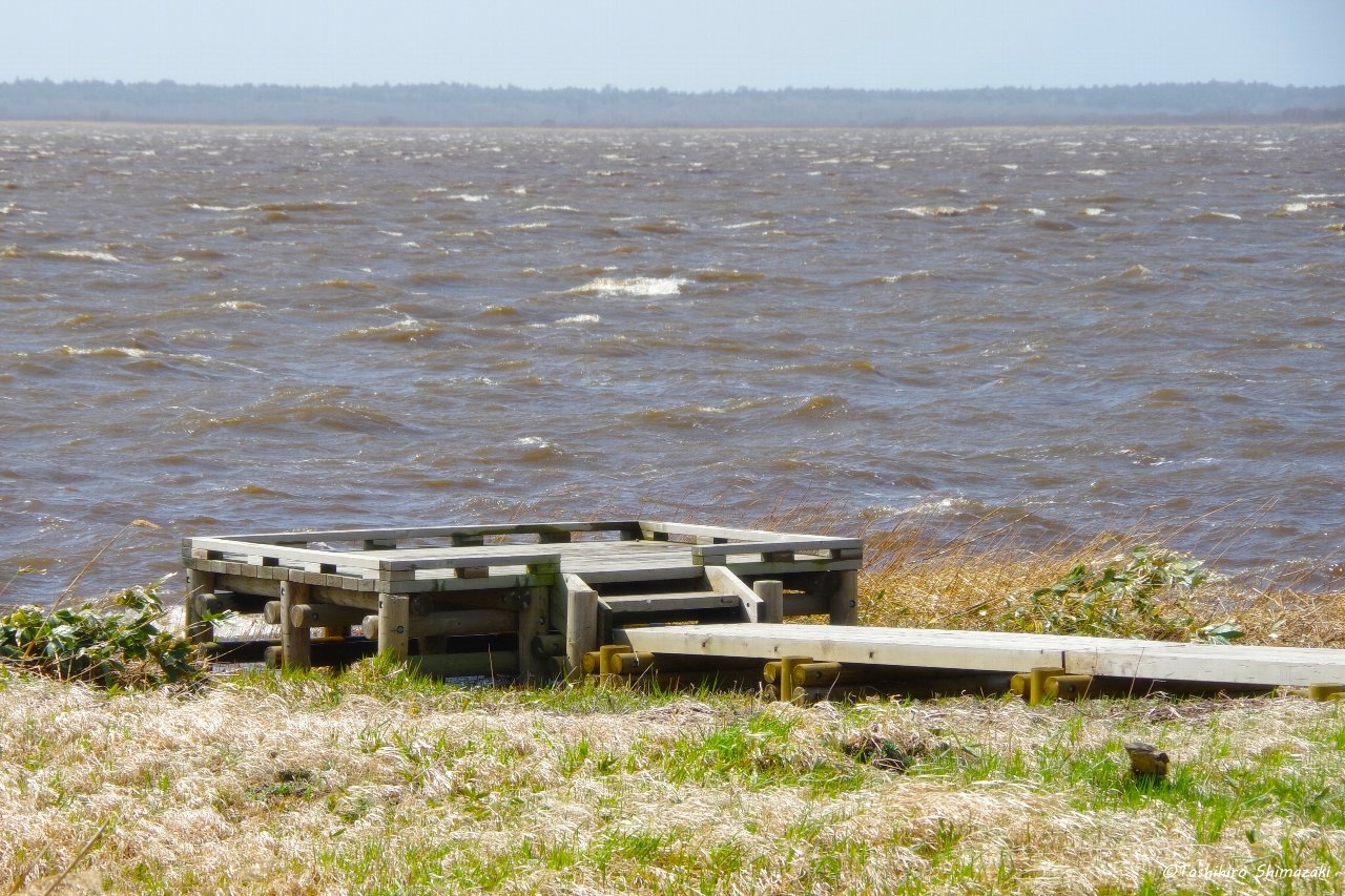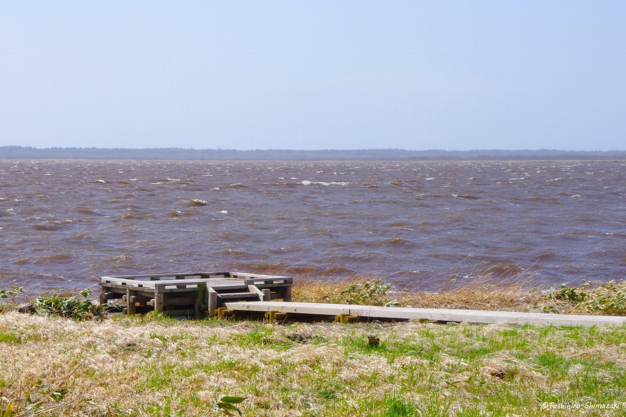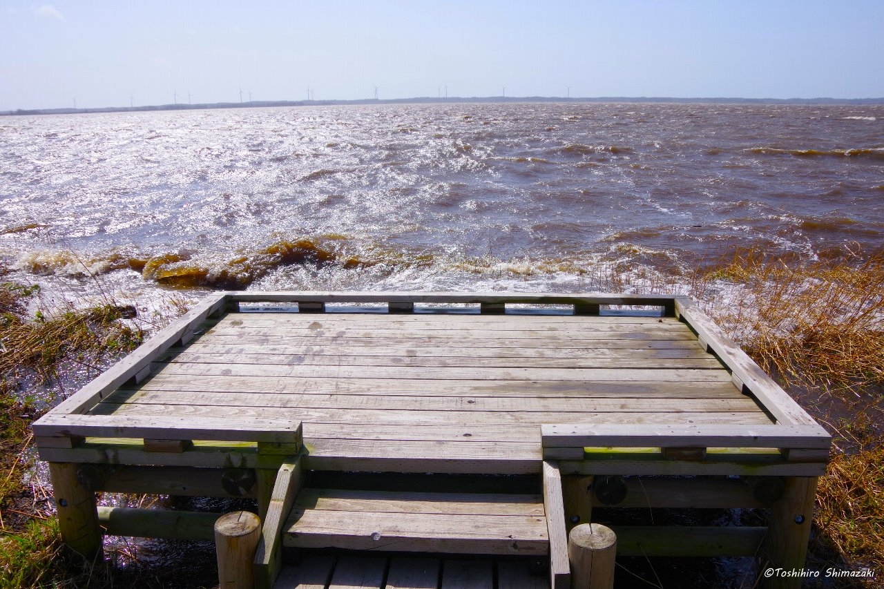パンケ沼は強風で展望デッキに波しぶきが掛かるくらい波立って海のようになっていました。