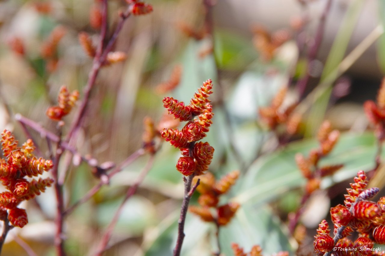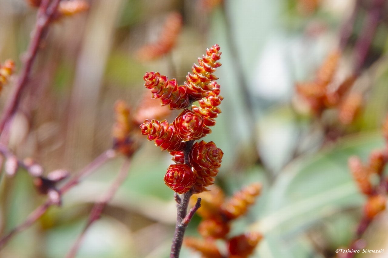 ハンノキの花はいつの間にか終わり、代わりにヤチヤナギの花が満開になっていました。