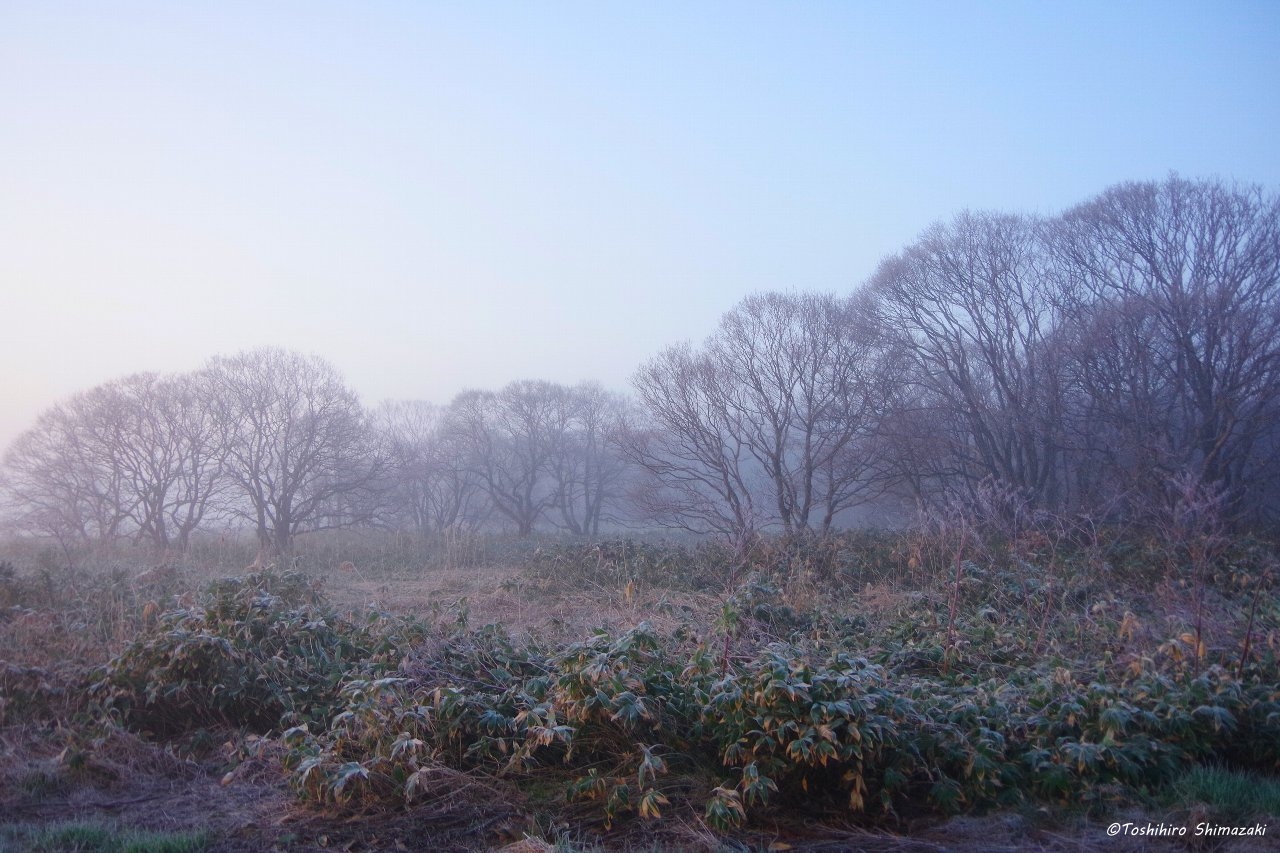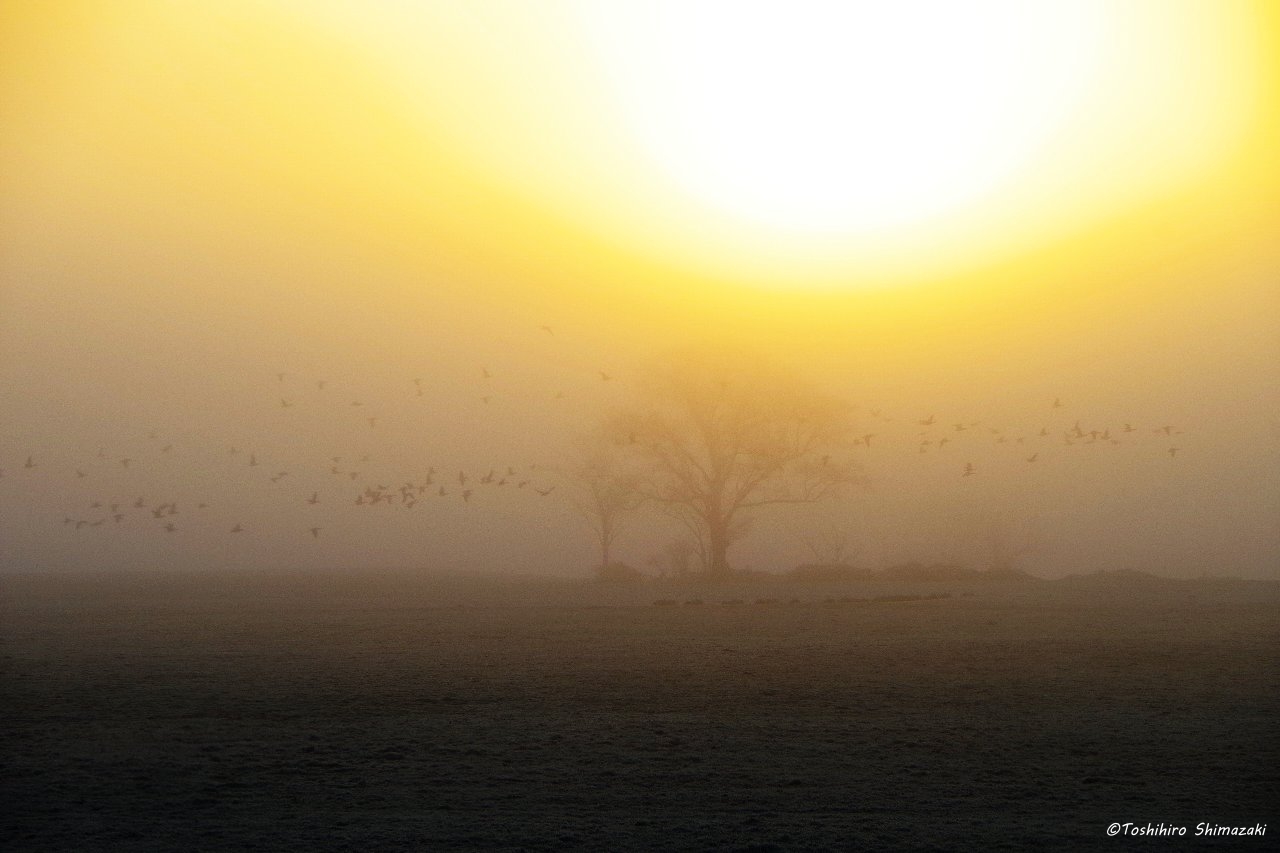 風は無く、辺りには朝靄が立ち込めている中、マガンの賑やかな声が響き渡っていました。