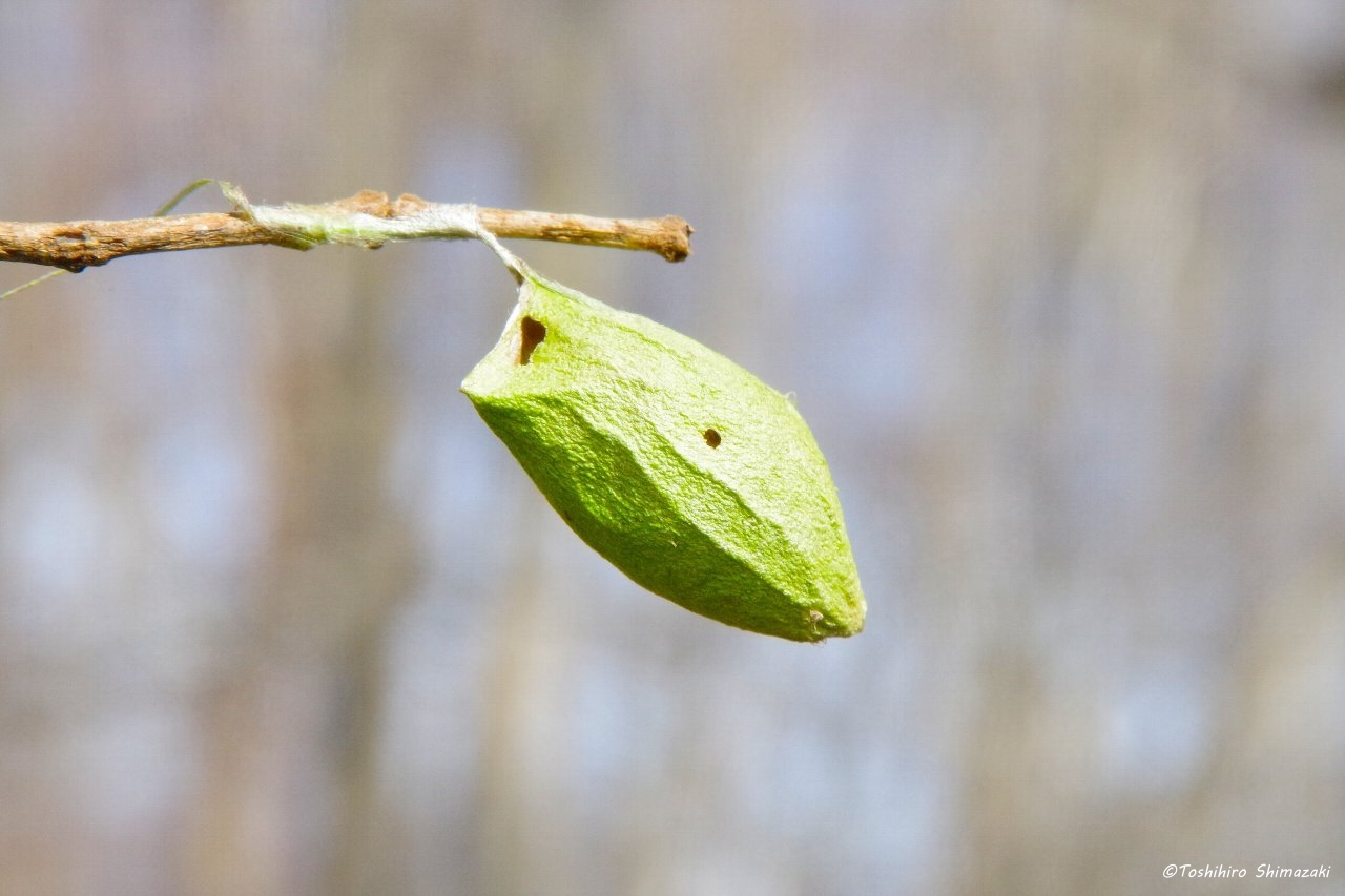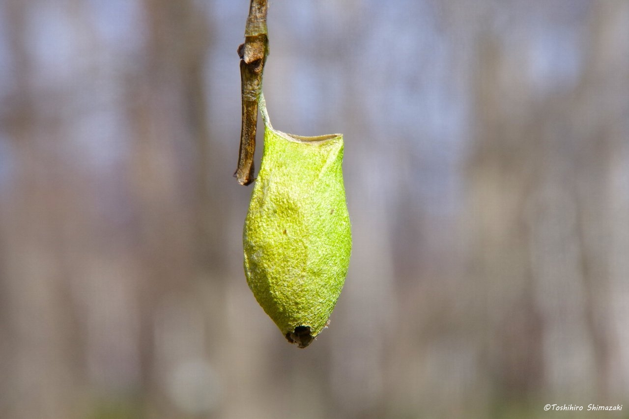 近くの足元にはエメラルドグリーンの美しいウスタビガの繭が落ちていました。